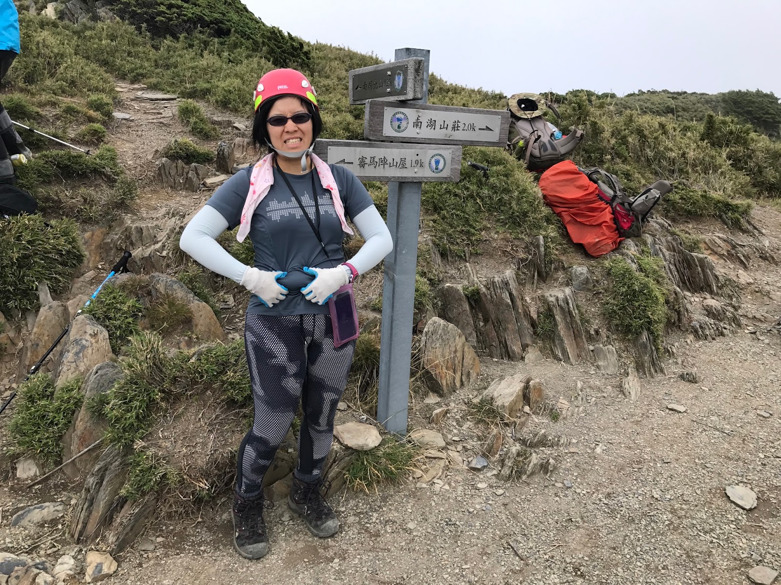岩盔:全路段碎石、岩石、樹根、箭竹林很多!!手腳撞傷都還可行動!但頭部受傷基本就是原地等待救援了!為了降低風險,帶習慣成自然!!這次有跌到中央尖溪幸好沒撞到。