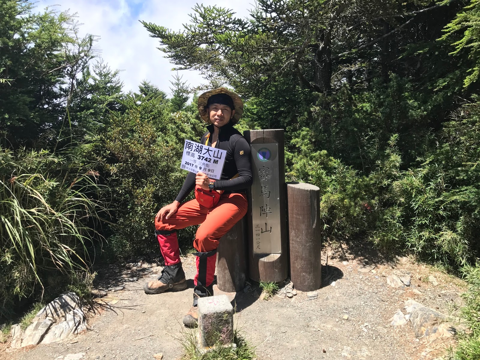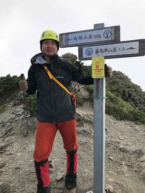 麻煩阿裕大哥幫我們合影後,就要趕緊出發了!!今天還要趕到南湖山屋,希望不要再摸黑了!
