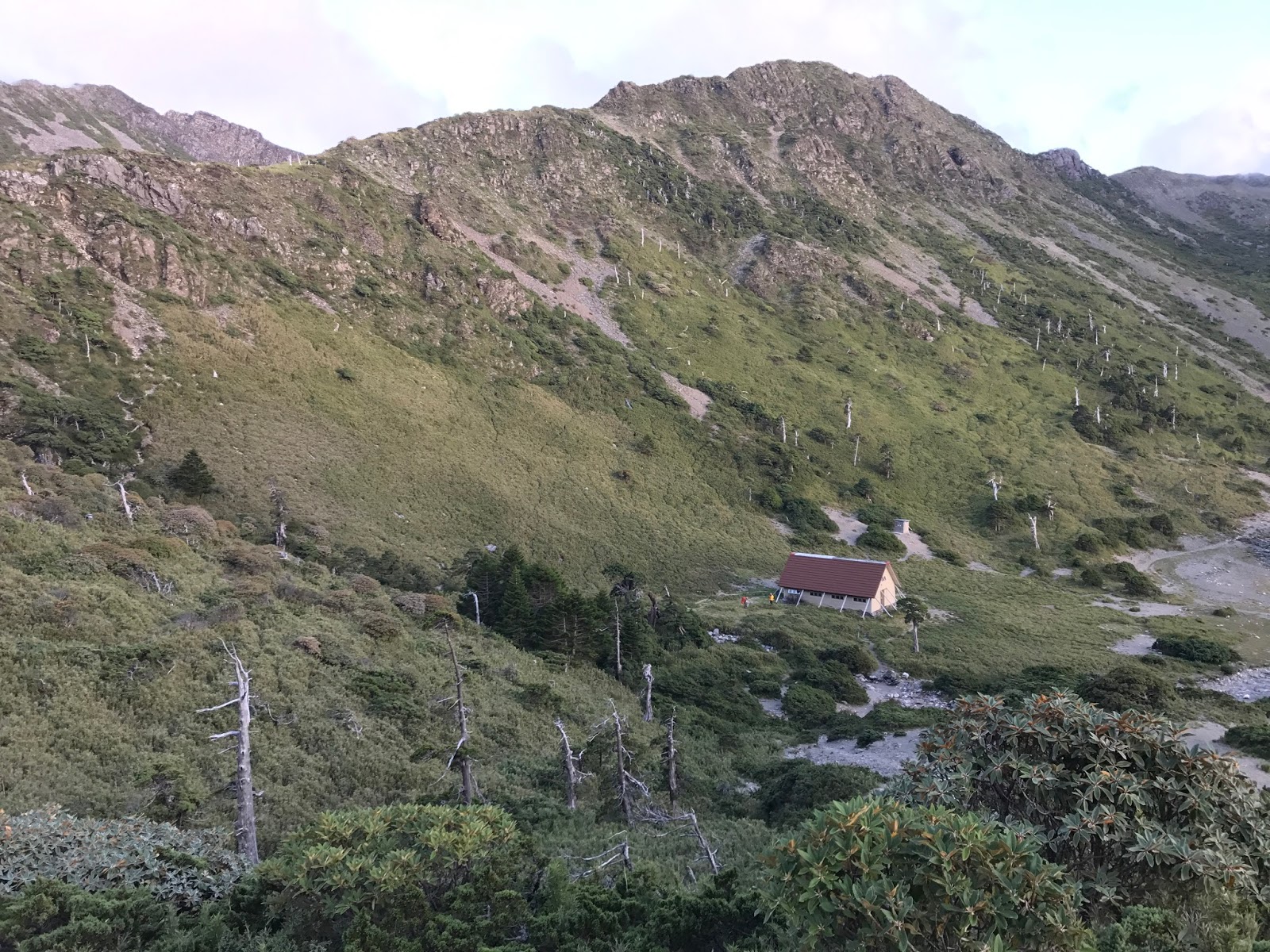 17:35遠遠就看到幾位山友在南湖山屋附近晃來晃去...