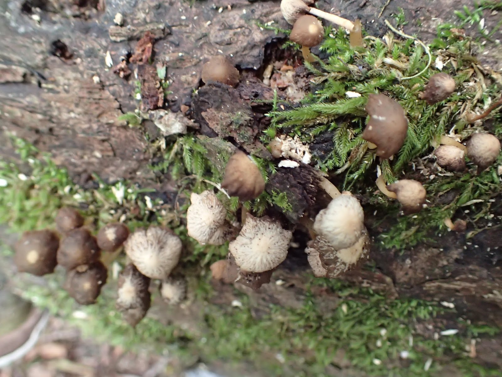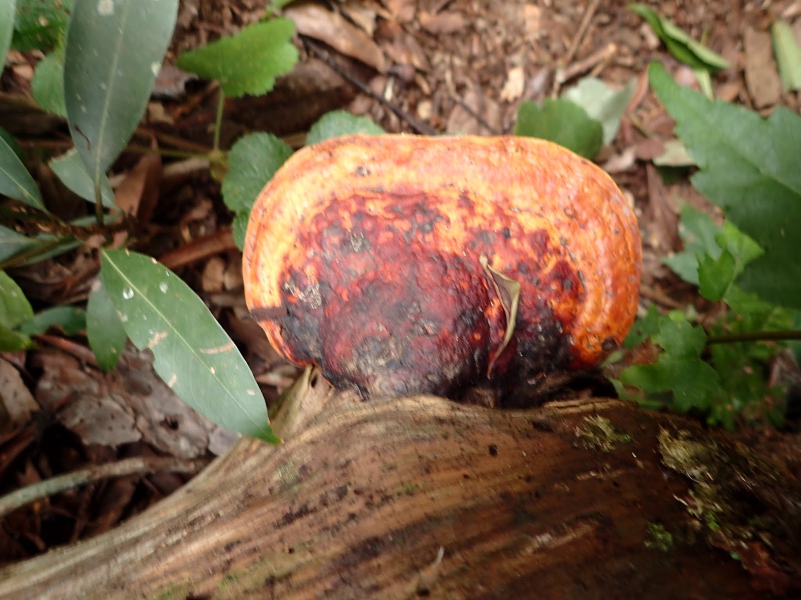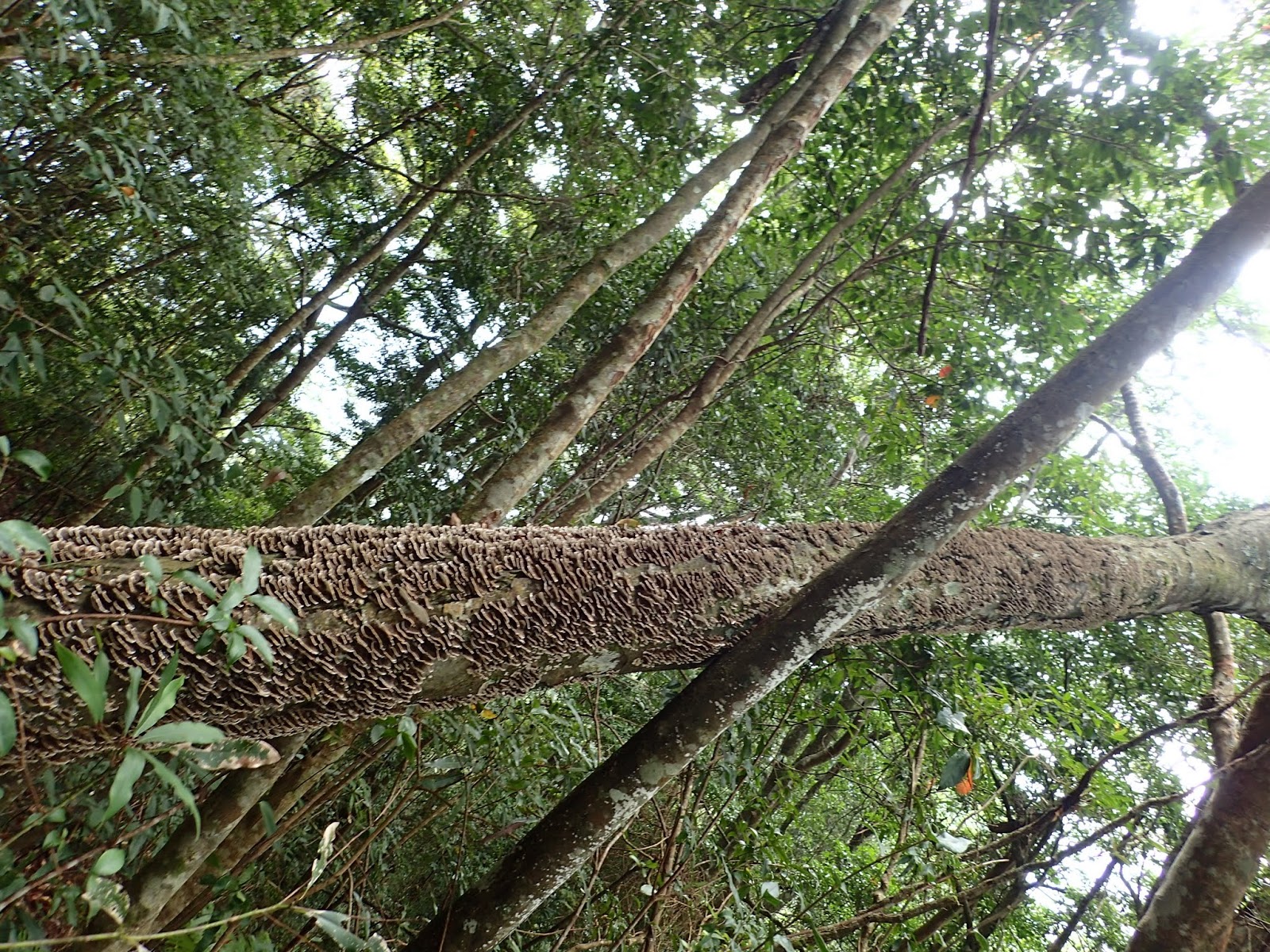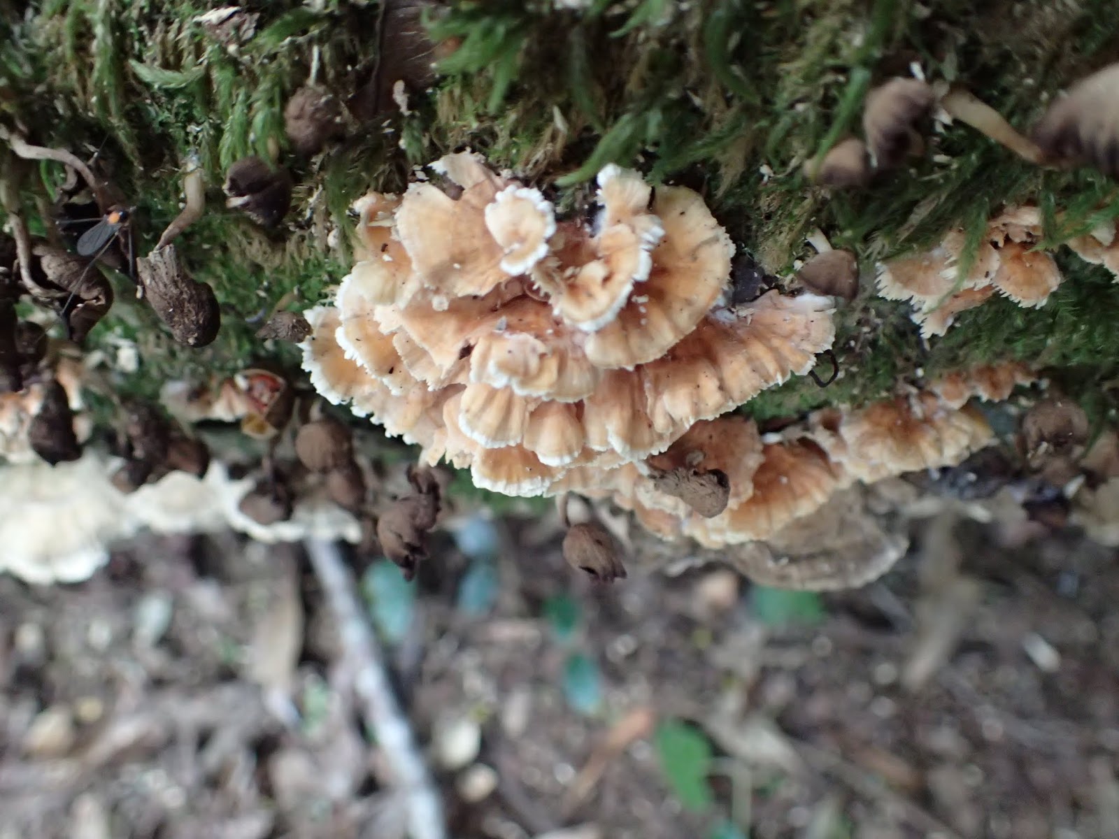 倒木上長滿了菇菇