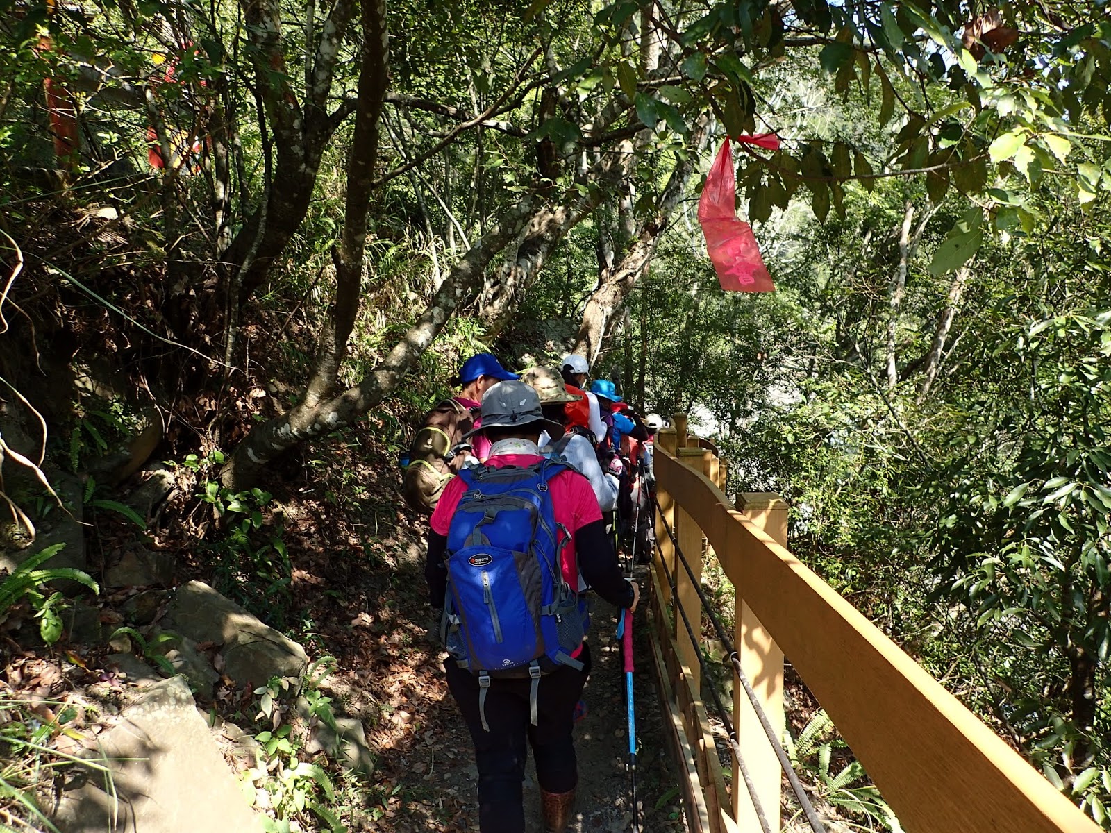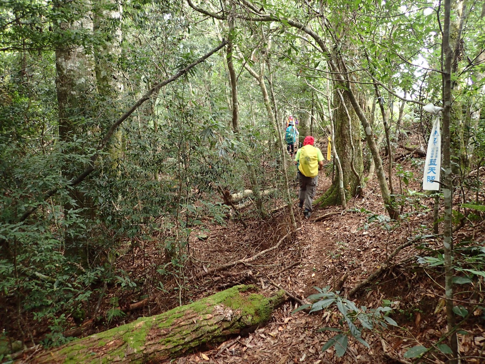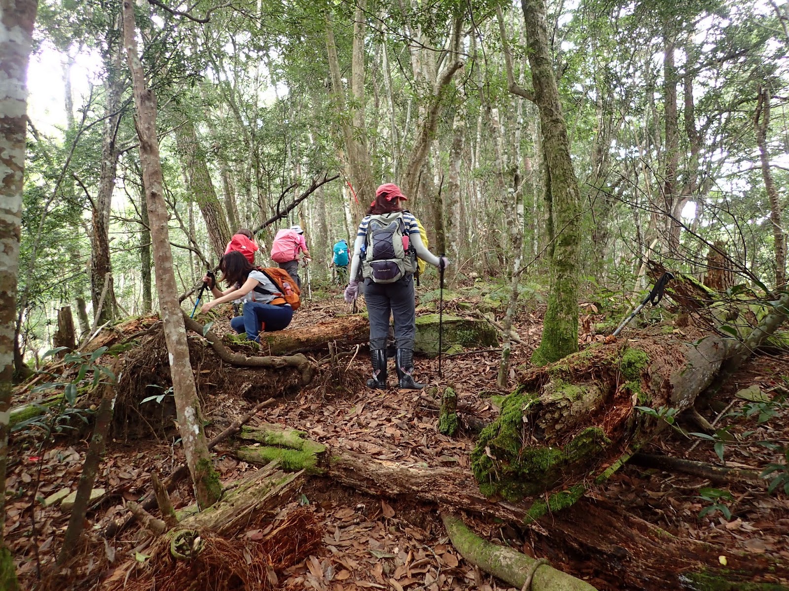 階梯上倒木橫生必須彎腰通過, 走在前頭的是$$及可愛的小百合