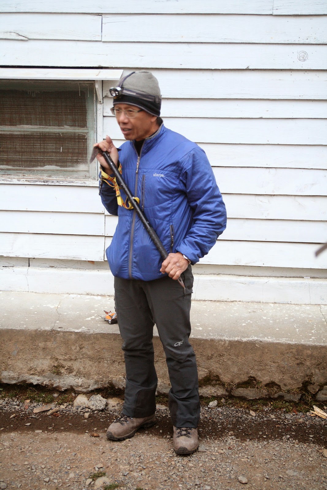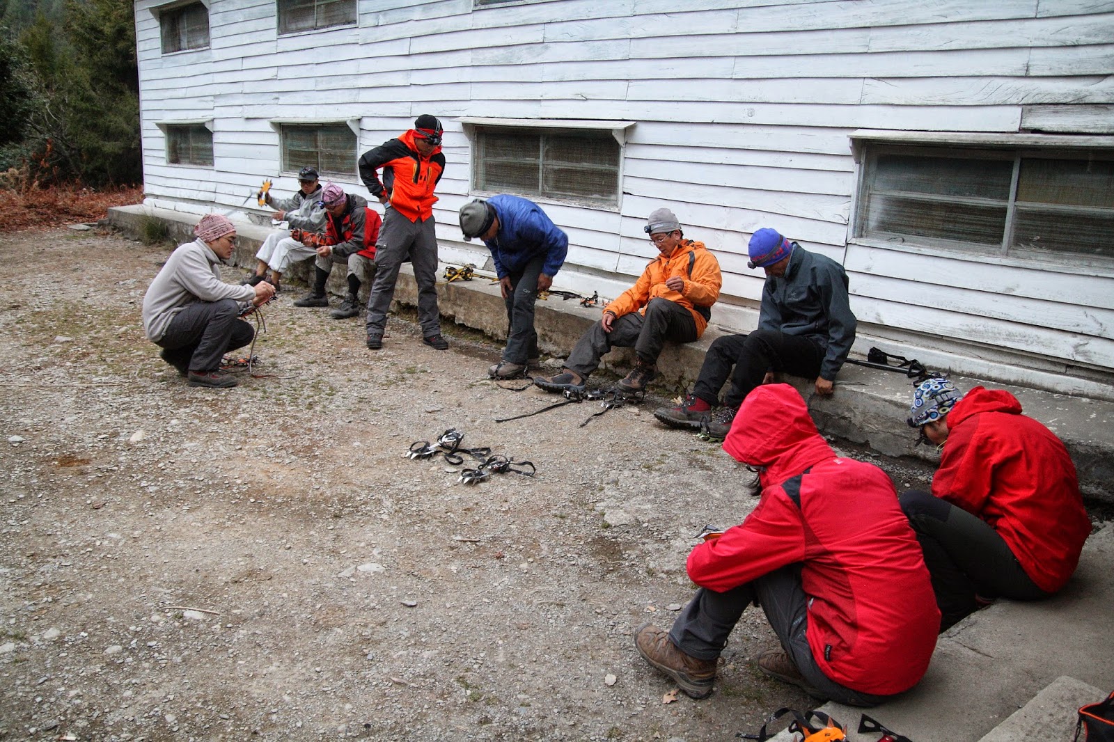 天黑前,歐陽老師先簡單交冰斧各部位名稱及冰爪如何穿戴