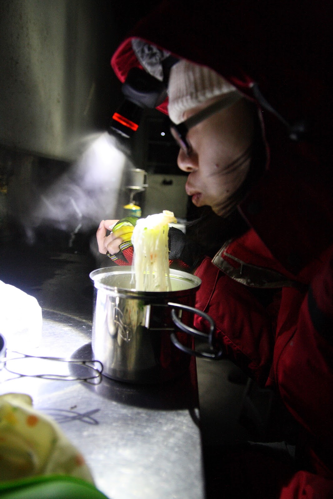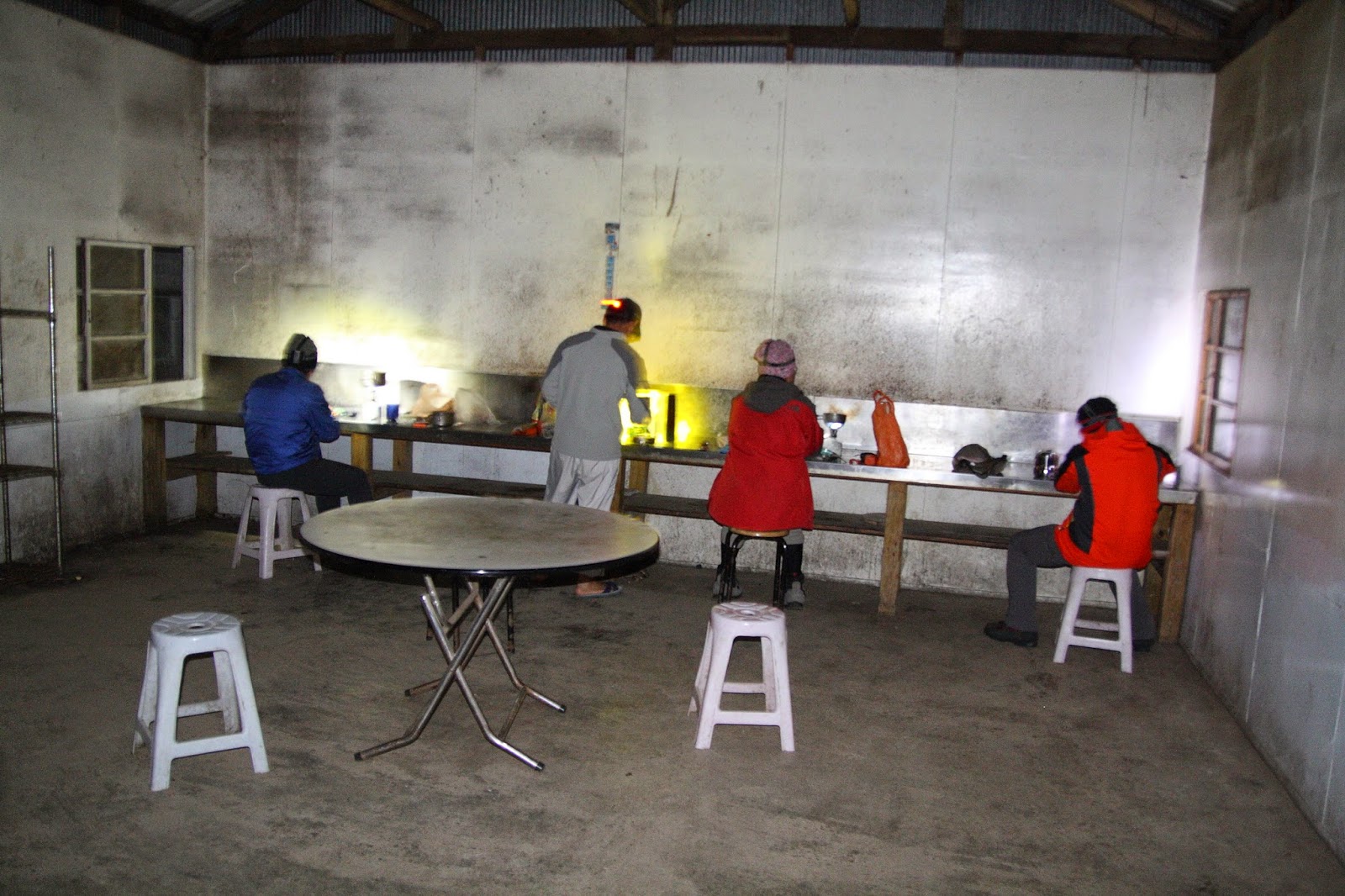 天一下就黑了,快點來煮個晚餐吧,由於是非假日沒人搶山屋,我們全包啦!!