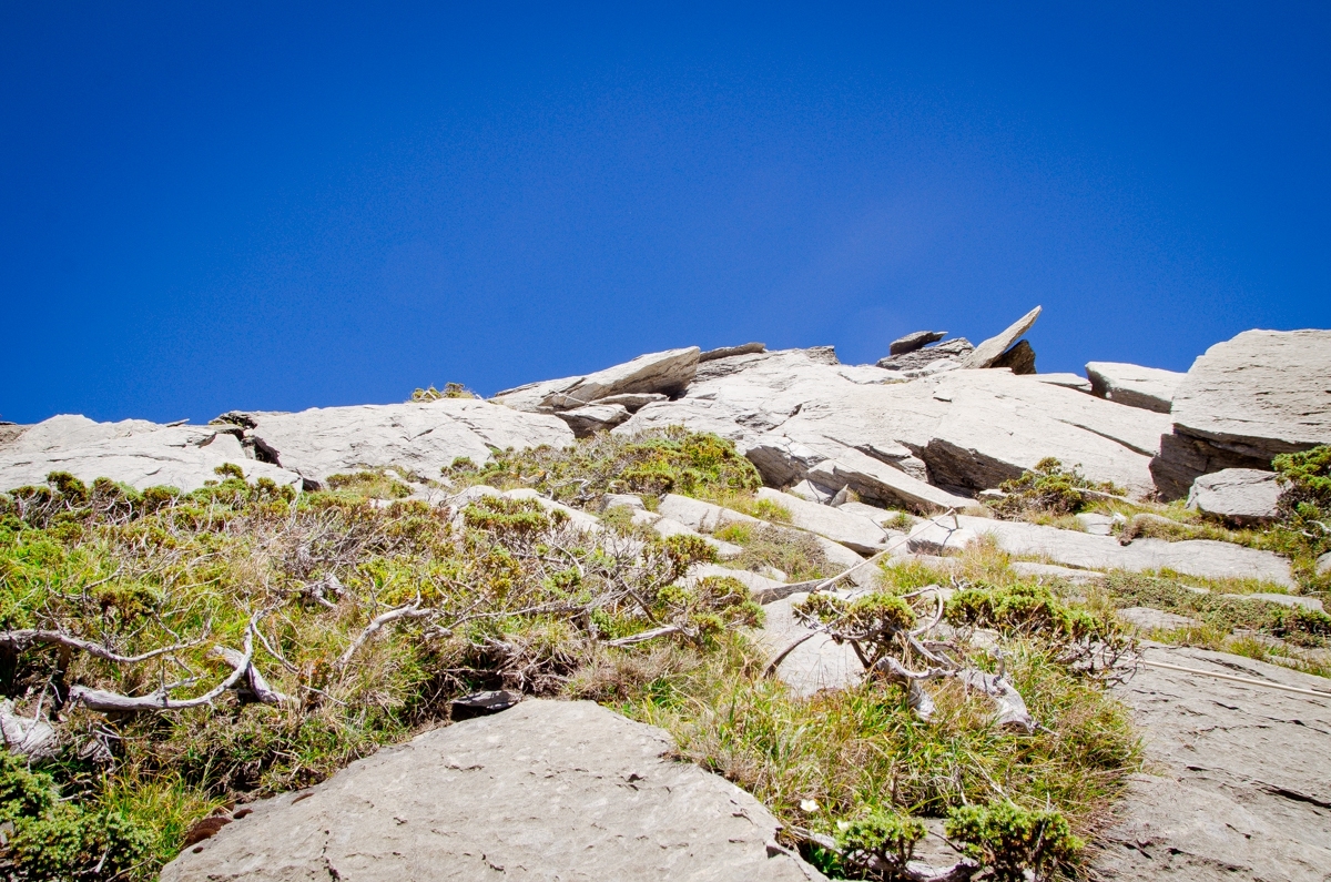 聽說前方就是中央尖東峰,中間靠左似乎有一條明顯路跡可走,但好像實際上目前並沒有路可以通過!不知前輩們是怎樣過去的