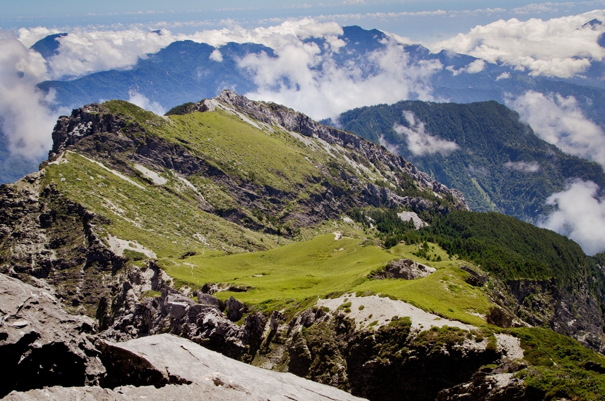 從南湖主峰看遠處的中央尖山,還以為山上會光禿禿的,沒想到植被還蠻豐富的!!