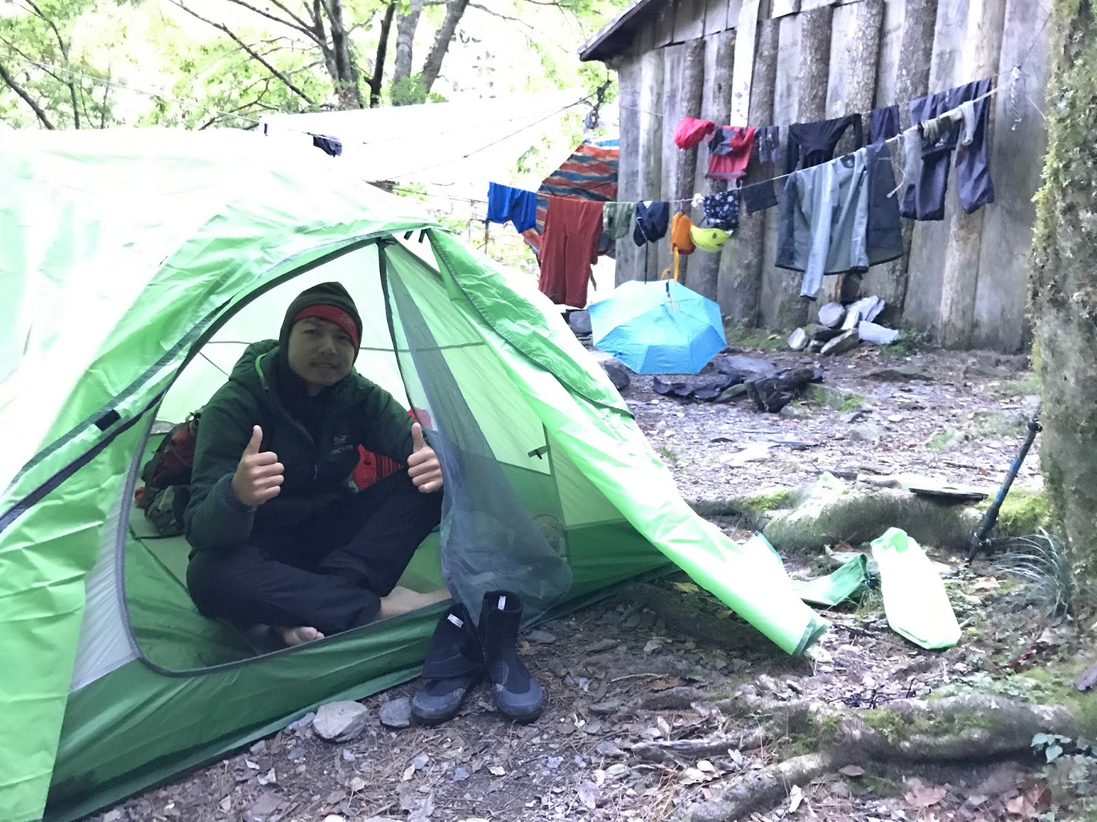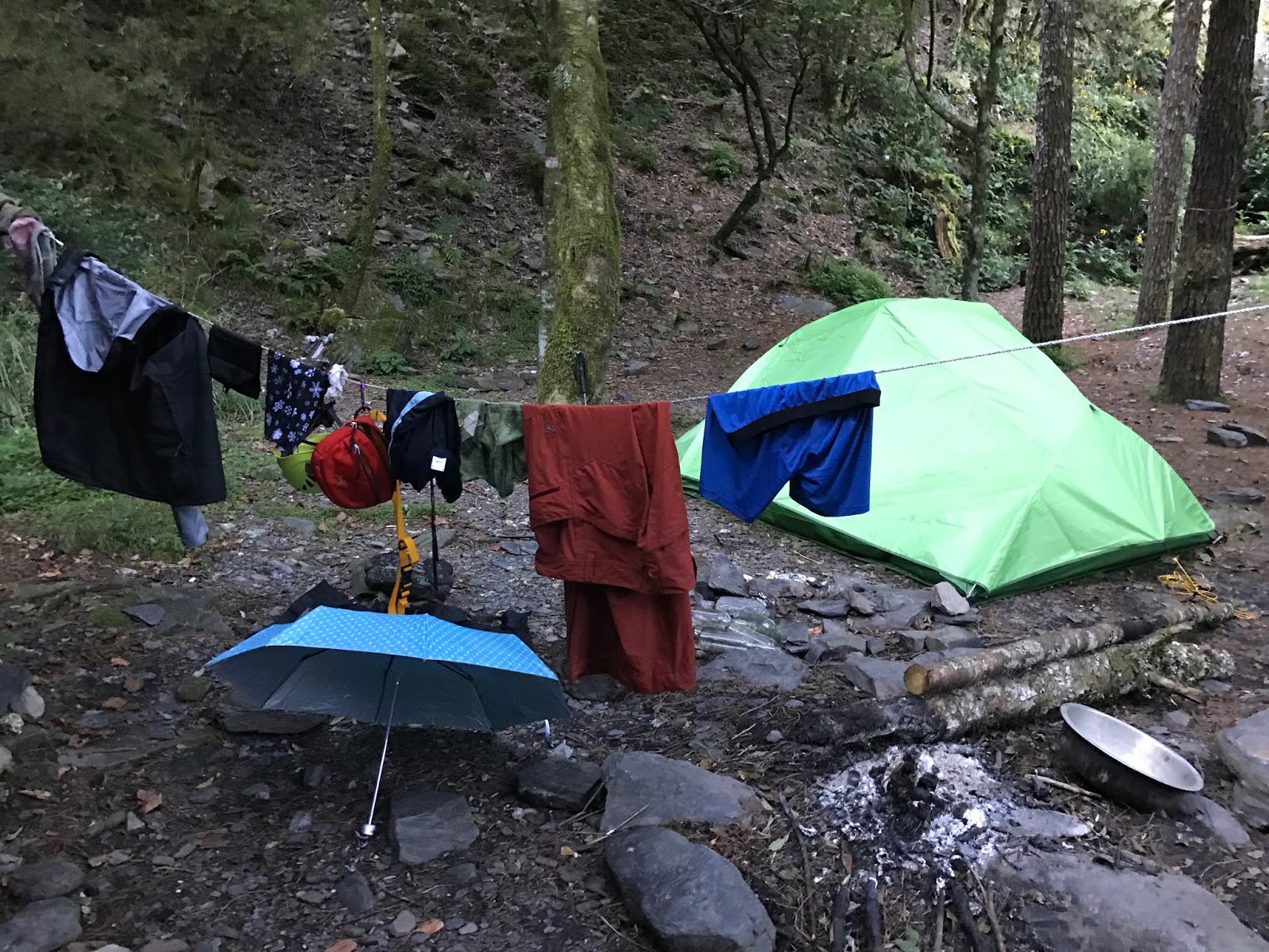 漸漸天已亮!也睡不太著,小特助說若有陽光,就先曬昨天溼掉的裝備吧!!