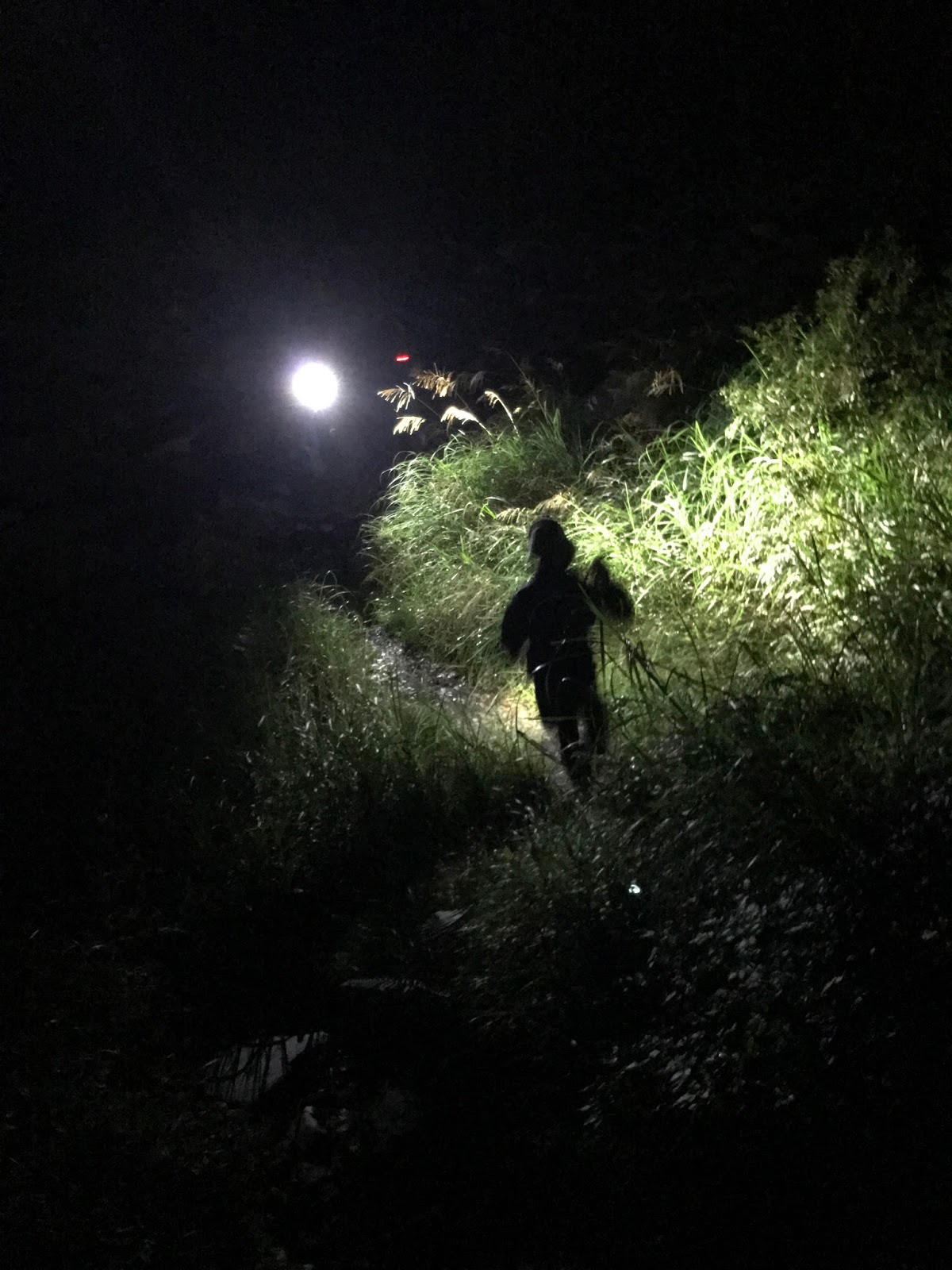 小特助最後是把頭燈給我!!她胸前掛個充氣燈!我背包後面也掛一個,我走前面看路徑!再回頭幫她照明