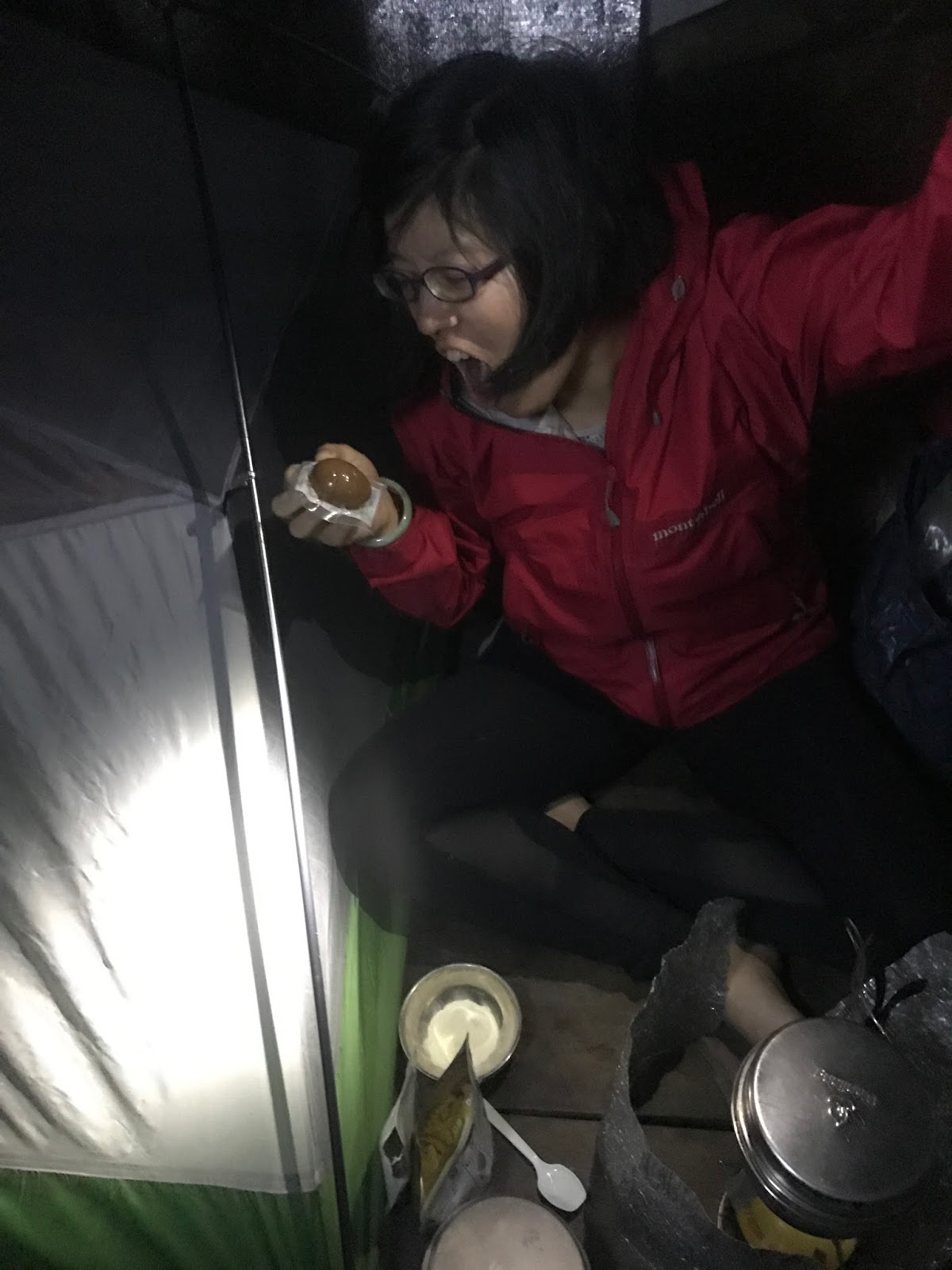 分了個滷蛋給小特助吃,慰勞她這幾天幫分攤點食材跟帳篷重量!