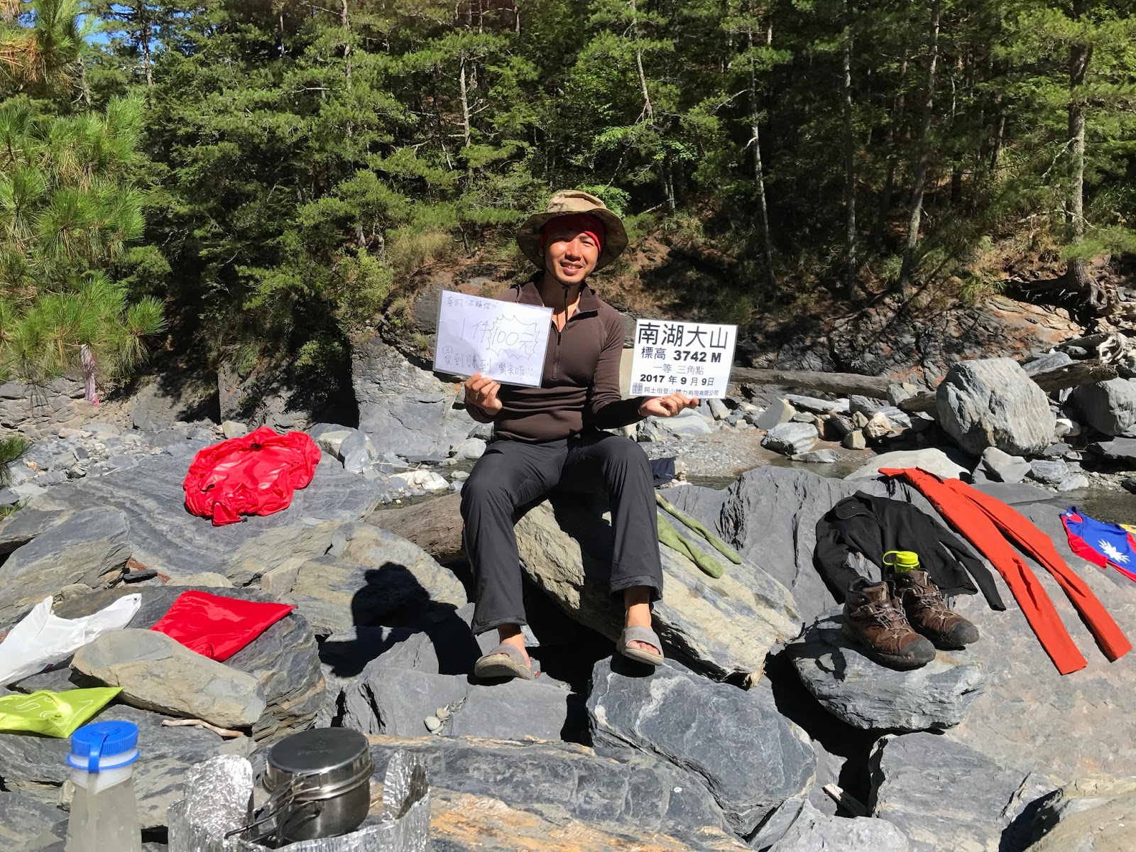 朔溪鞋:南湖南峰下中央尖溪需朔溪(回程上南湖溪山屋也是),若不穿雨鞋需帶朔溪鞋,因登山鞋的鞋底如黃金大底,遇到有水或有苔的岩石都是無視防禦率多少,直接就是給你滑下去!!所以該換朔溪鞋還是得帶唷!!