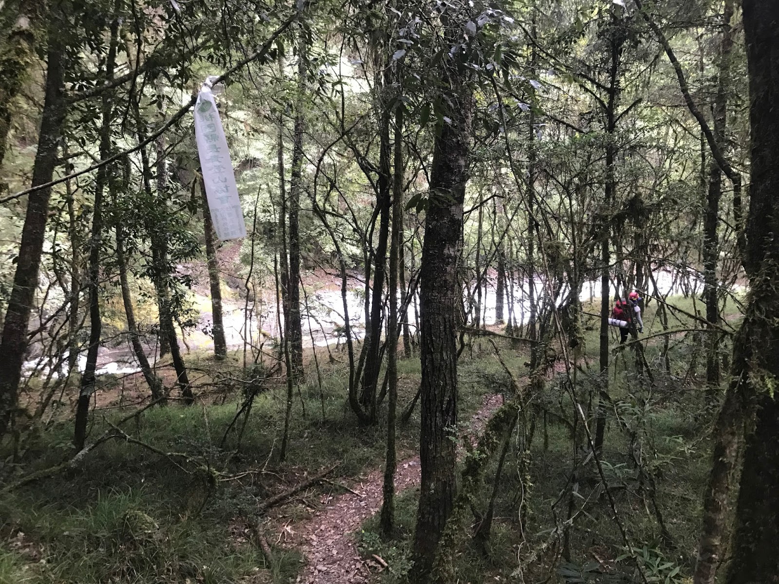 香菇寮其實沒有特別指定哪個區域是營區!這附近只要平坦都可以紮營,指示牌旁也只有一塊破損的布,也難怪領隊後來找不到香菇寮,因為他已經到了!