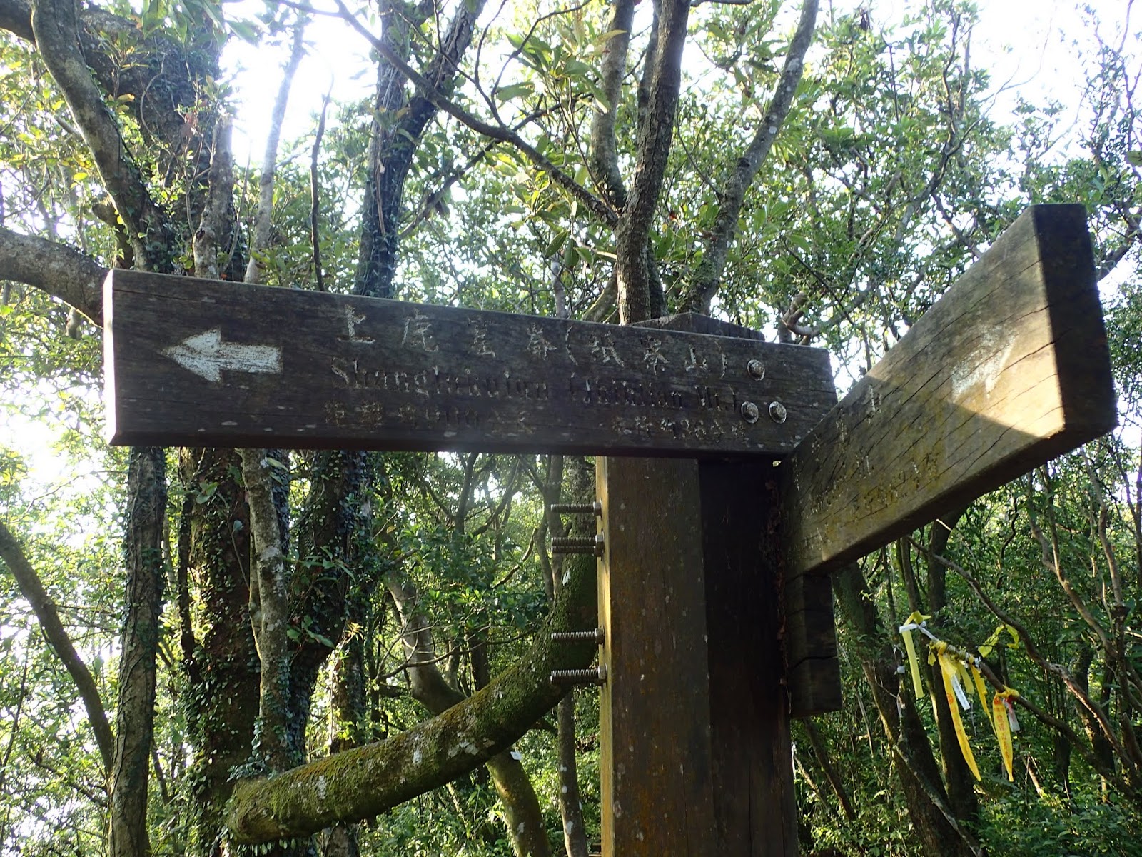 正在徬徨猶豫時遇到附近正在運動的山友, 說已落後其他山友很久了, 如往大尖山天秀宮還要走很久, 介紹我走捷徑, 怕我獨行不認識路, 乾脆帶我走