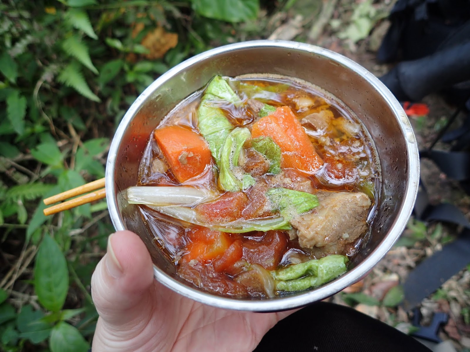 旁邊還有其他山友準備的小菜, 甜湯...只能說參加基哥隊真的好幸福, 落後的基哥及敏雄哥久久後才到...