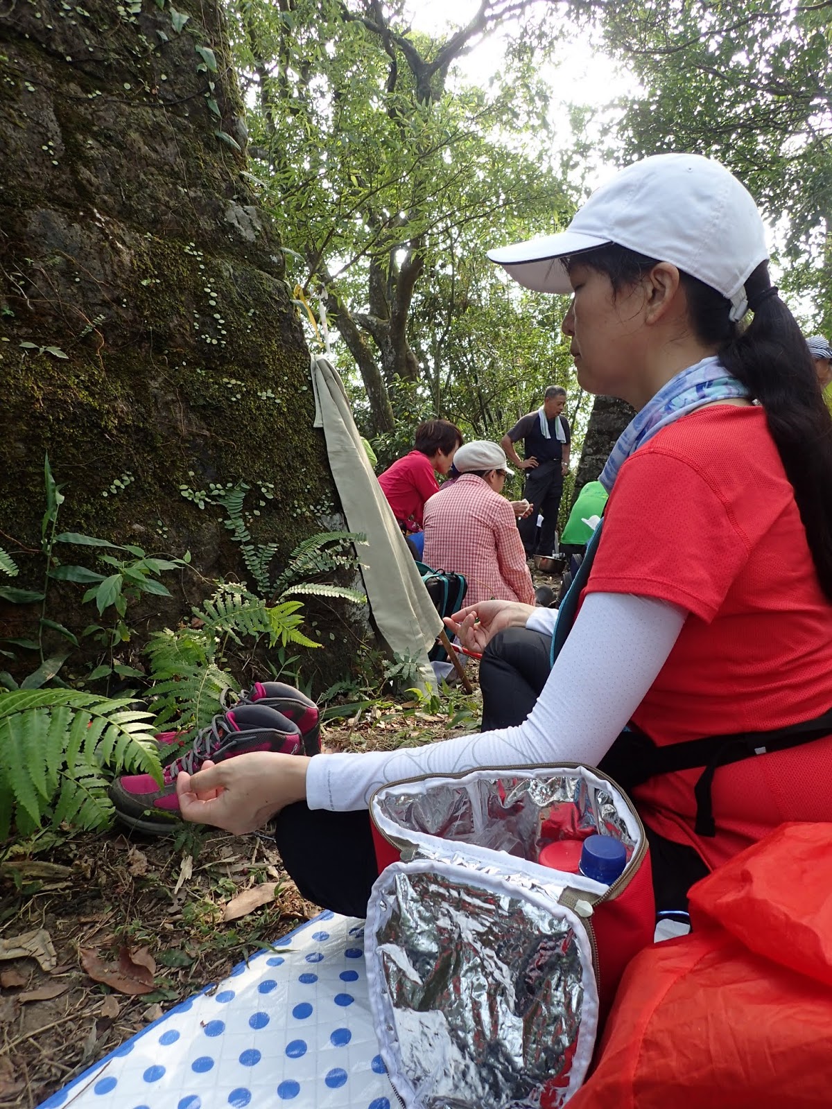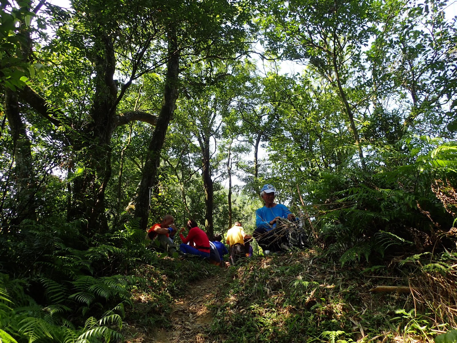 大尖山步道口收到王哥適時補上愛心飲料一罐, 真的是及時解渴, 感恩啊, 前面路口宜佳及麥麥姐坐著休息, 不休息繼續往上走