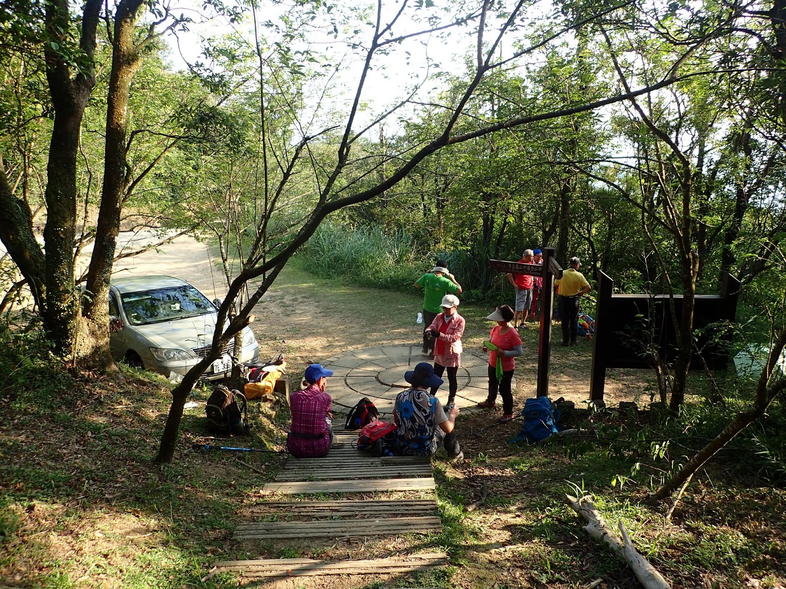 走出大尖山步道, 路旁停著好幾輛車