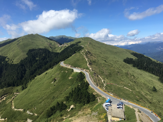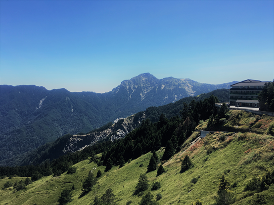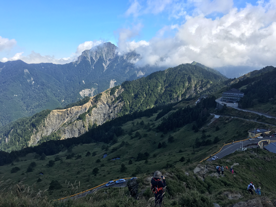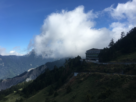 從岩壁下來後就回直接接到合歡山遊客服務中心,可以在這邊休息一下。另外這邊有一個寮望台,天氣超好可以看到很多山,像是南湖大山和奇萊山都看的到。然後松雪樓和滑雪山莊也在這邊,可是沒抽到滑雪山莊,我們只好住在離此地一小時車程的清境農場。