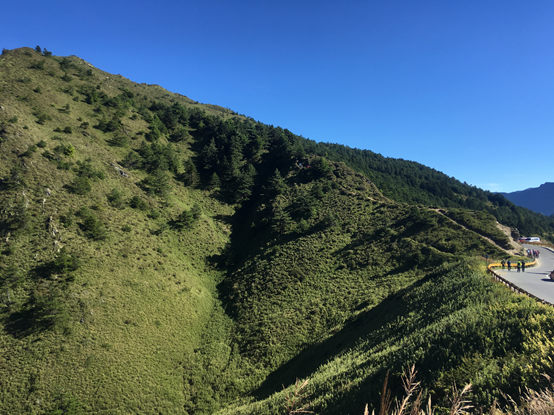 離北峰的登山口約450公尺處有個小風口休息區,坐在那邊吃早餐後打盹,睡了一個多小時想要走路4公里去合歡山遊客中心,結果走了300公尺就撐不住,搭訕剛好停車的路人問問能否搭便車。我當時已經累到不行了所以恥力無限的一定要搭車,這也是我第一次路上這樣攔車搭便車,果然人累到極限後會逼發自己無限潛能,包含恥力。