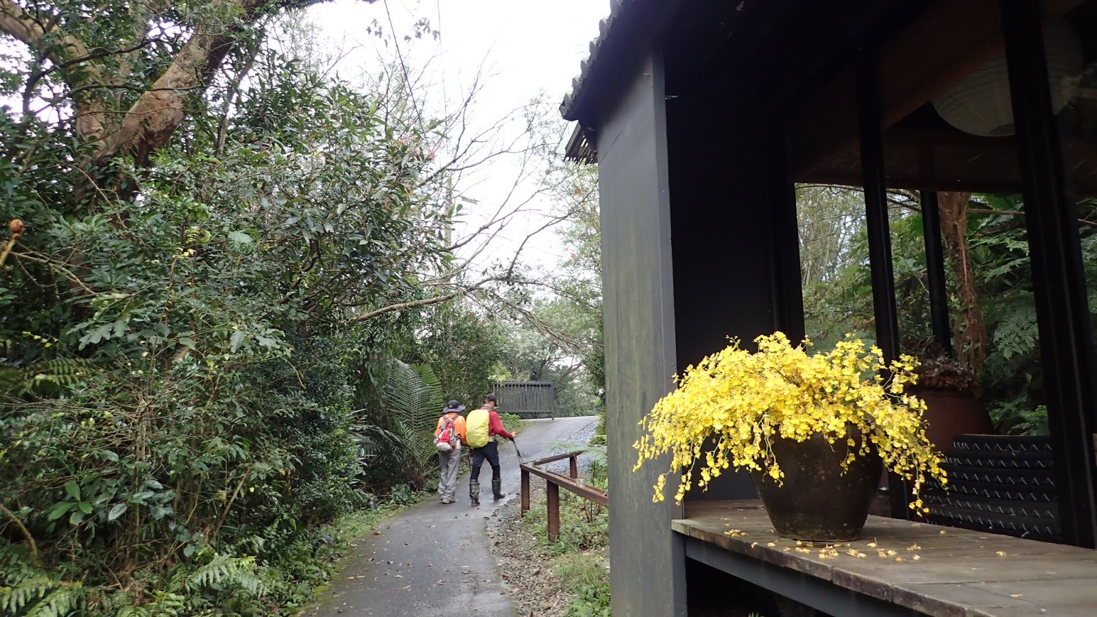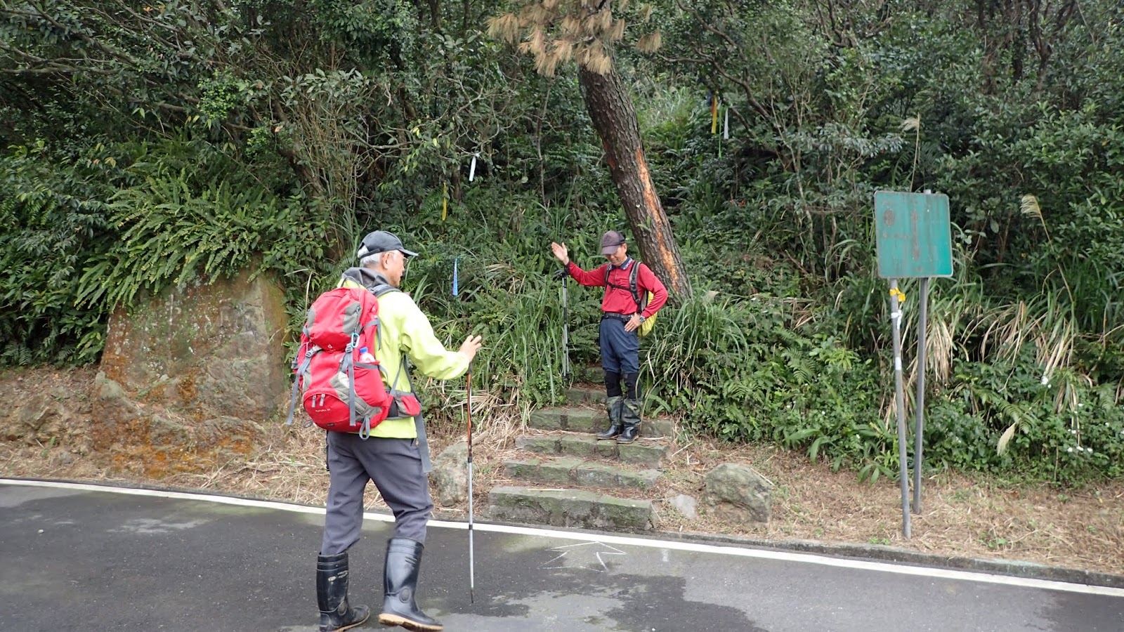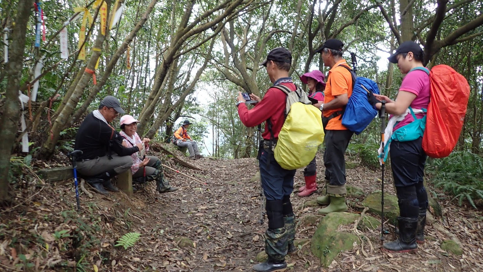 下到友蚋山步道口, 看到大家都坐在路旁休息了