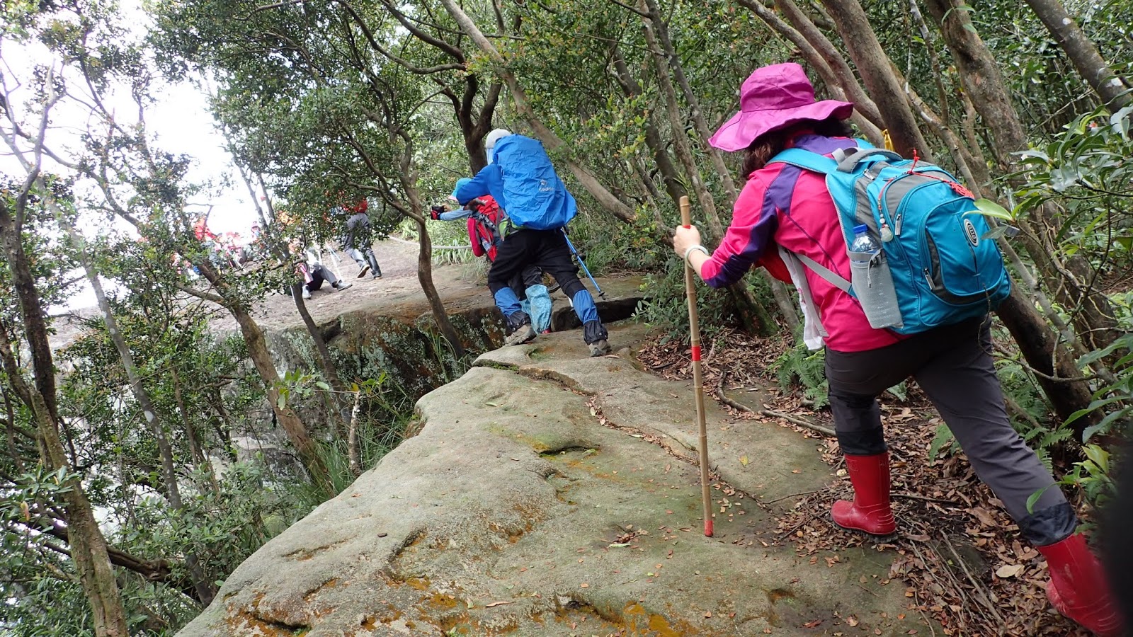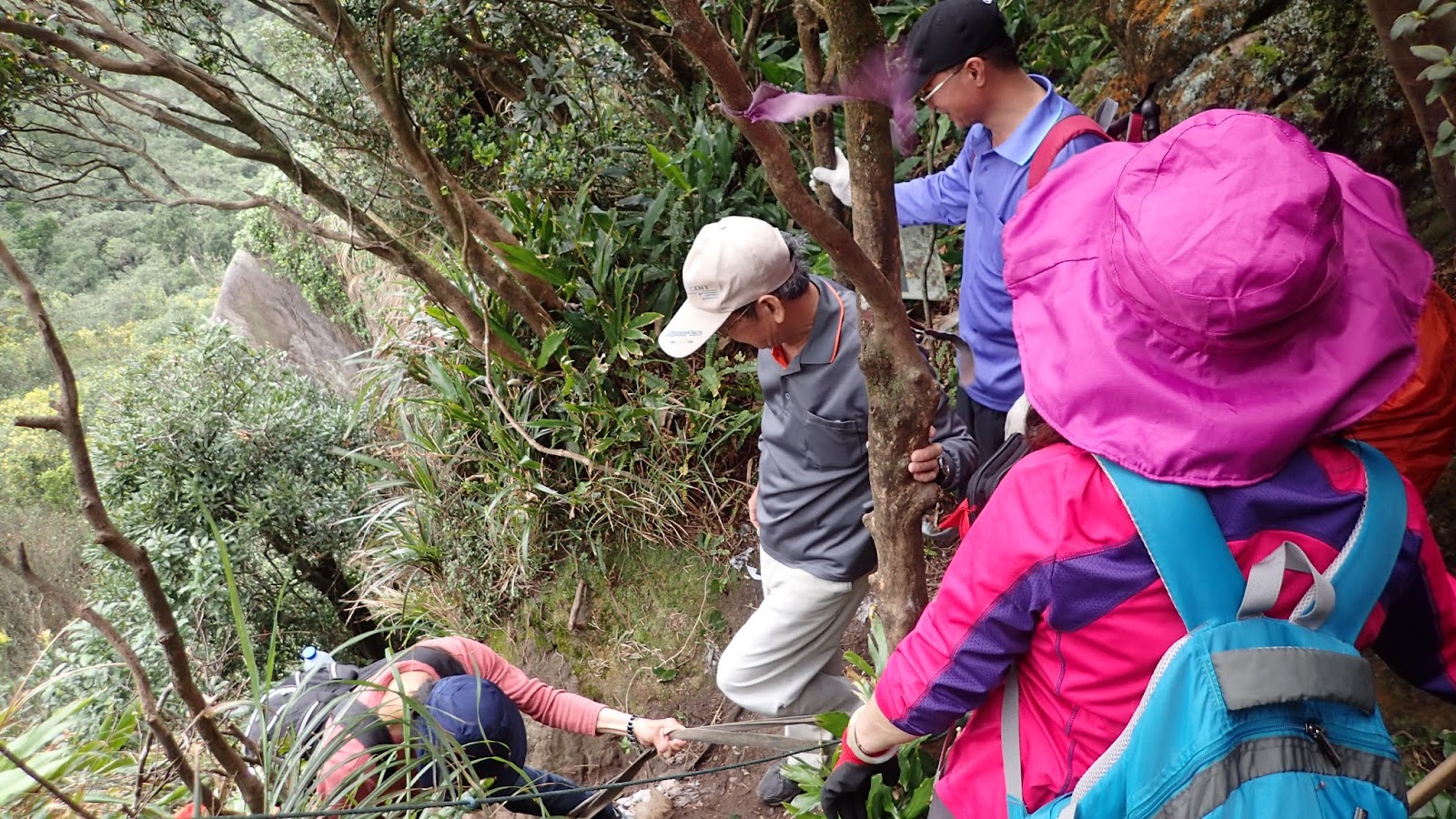 上去時不小心折扭到右臂, 頓時手舉不起, 整個人暈眩站不穩, 臉色發白, 好在押隊大哥及隊友照料, 幫我手轉一轉, 擦了涼涼的薄荷, 補充了兩塊巧克力, 休息一下手不痛沒暈後續走