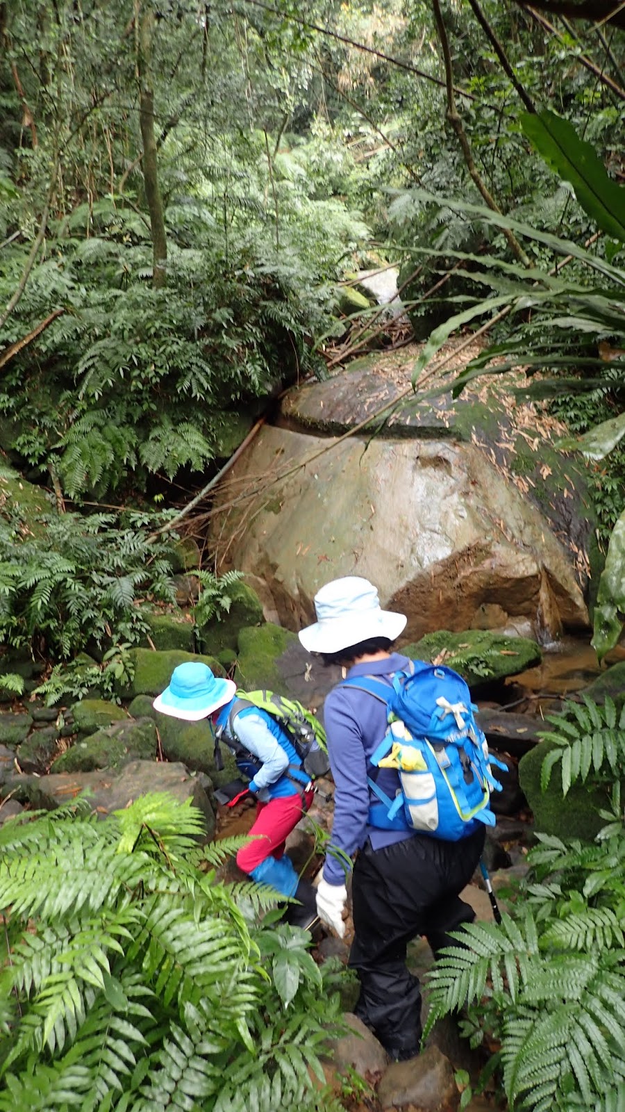 騎虎難下, 終究要過的關卡, 硬著頭皮下去, 救人喔, 往下踏點落差大搆不著, 在押隊大哥協助下, 終於安全落地下來了