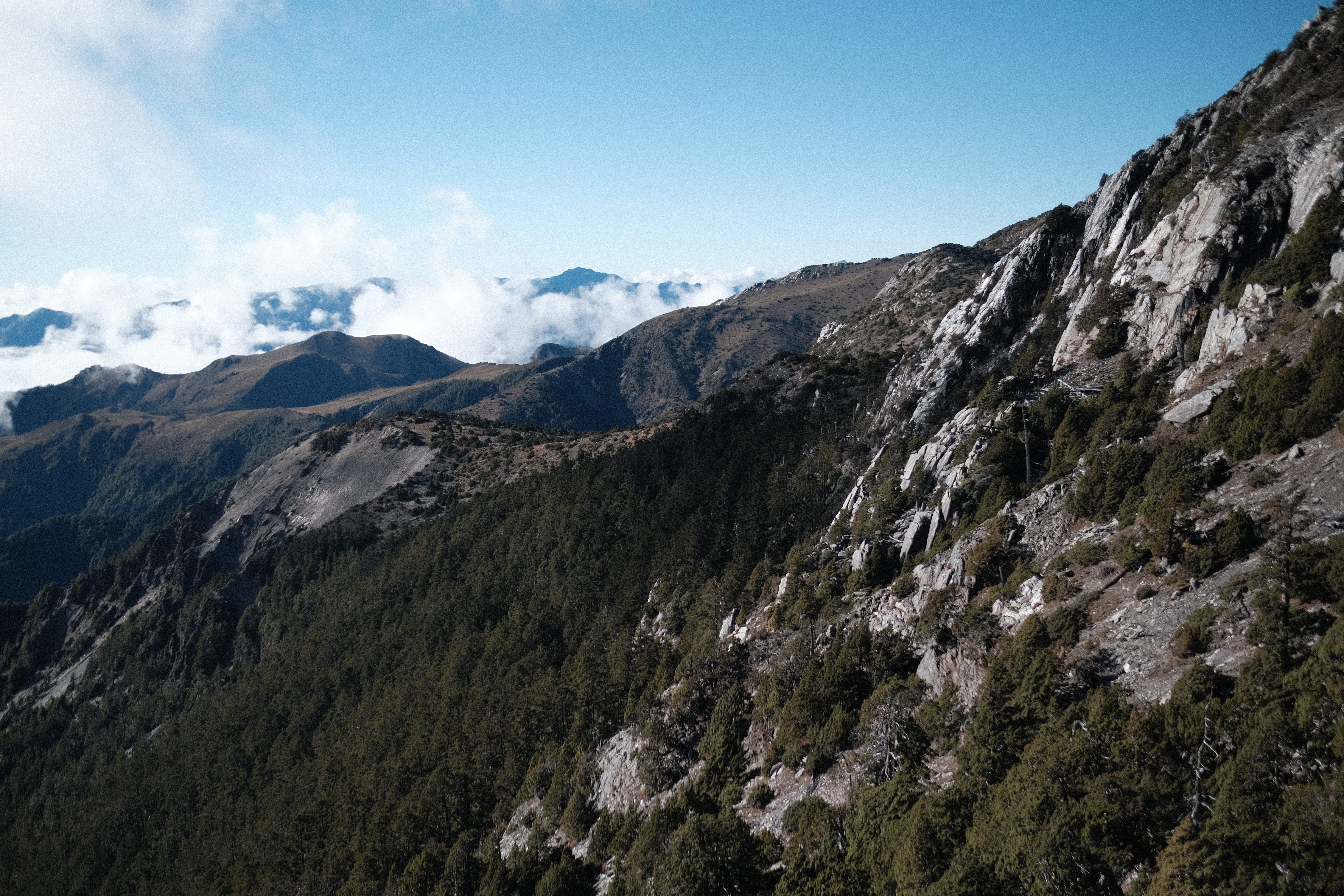 秀姑巒山從秀姑巒山回來體能已掉大半,往大水窟山的緩上漫漫長路,鈺杰已開啟行屍走肉模式,基本上他只剩下拖著雙腳行走的軀殼,跟他講話大多不會獲得回應,仿佛在獨攀一樣,而且越走越慢(偷臭一下他)圓柏白骨一直延伸到大水窟山北峰都還有,真的好驚人。