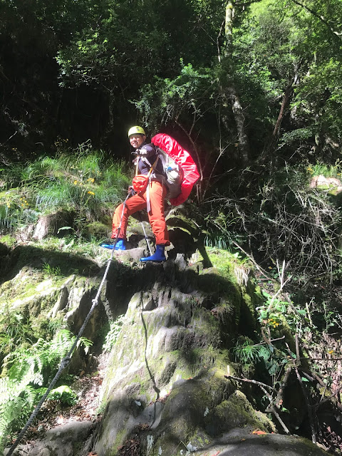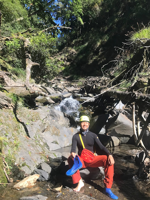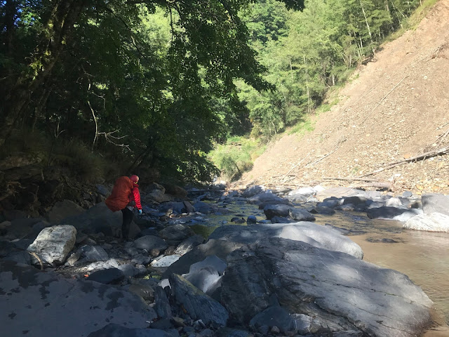 還是狀況外的我!以為今天也是要像昨天中央尖溪那樣一直朔溪,沒想到一過對岸就...準備要上朔,跟昨天一直沿著溪谷走不一樣,這次是向溪谷往上爬