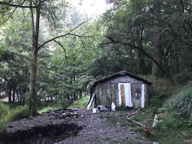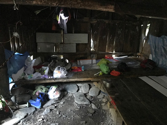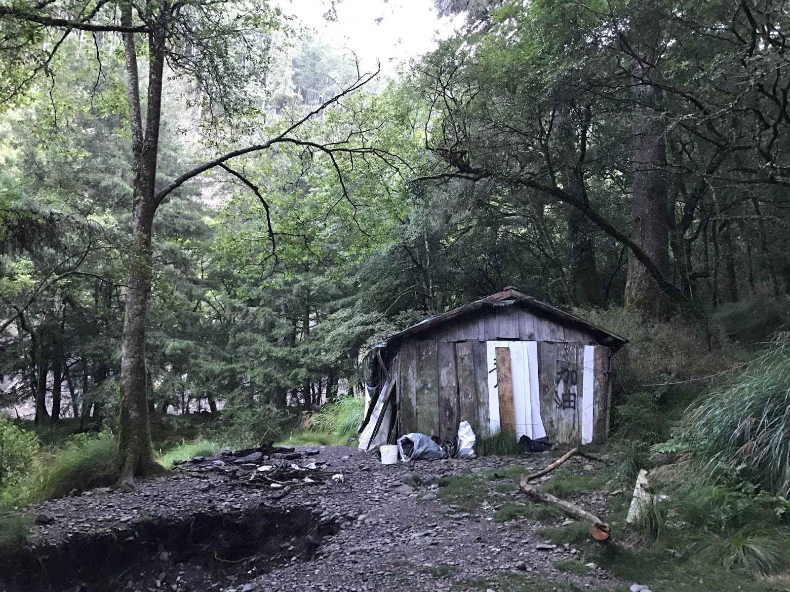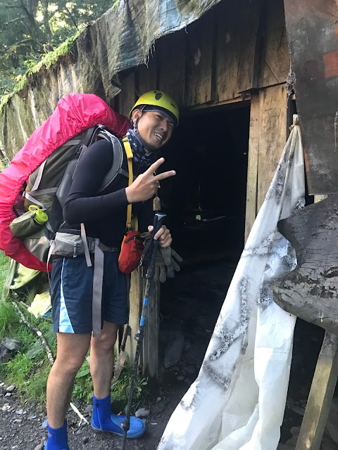睡著睡著,怎一直往右側滑落,原來地板已部分傾斜,感覺我睡到一半會摔出山屋!!那可真慘阿!外面還飆著細細霧雨,不管了就這樣半夢半醒狀態直到天漸漸轉亮!