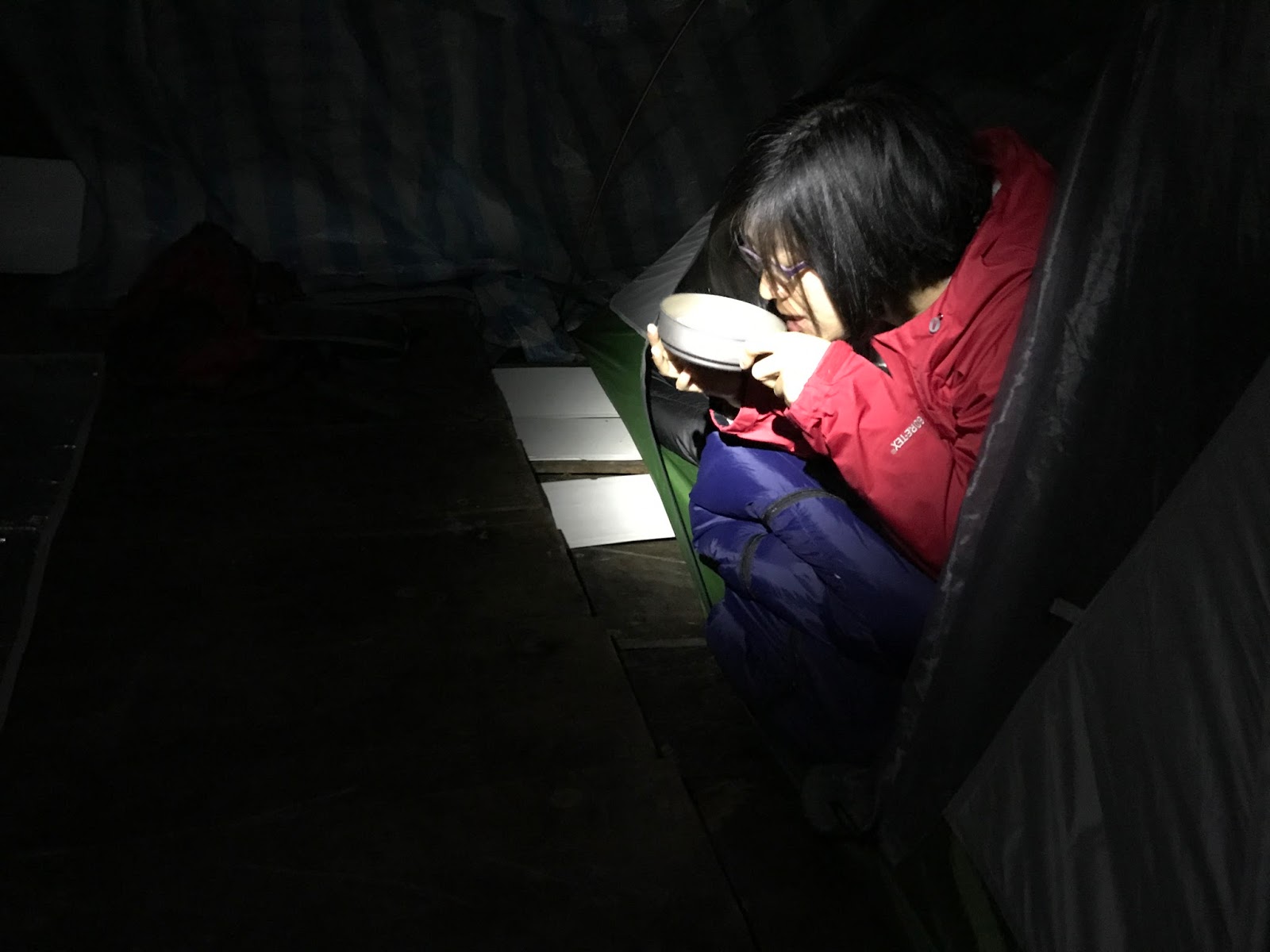 由於山屋還是有老鼠橫行,於是還是搭內帳在裡面,把食物都收進帳篷,吞一顆安眠藥倒頭就睡了!!一切都等明天再說吧!!