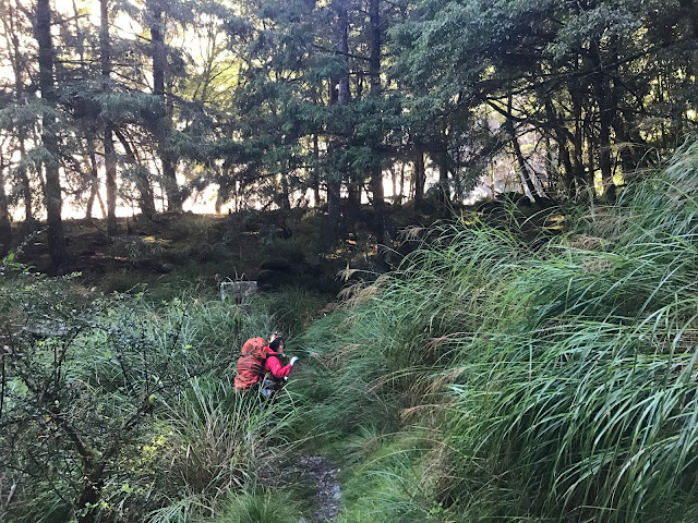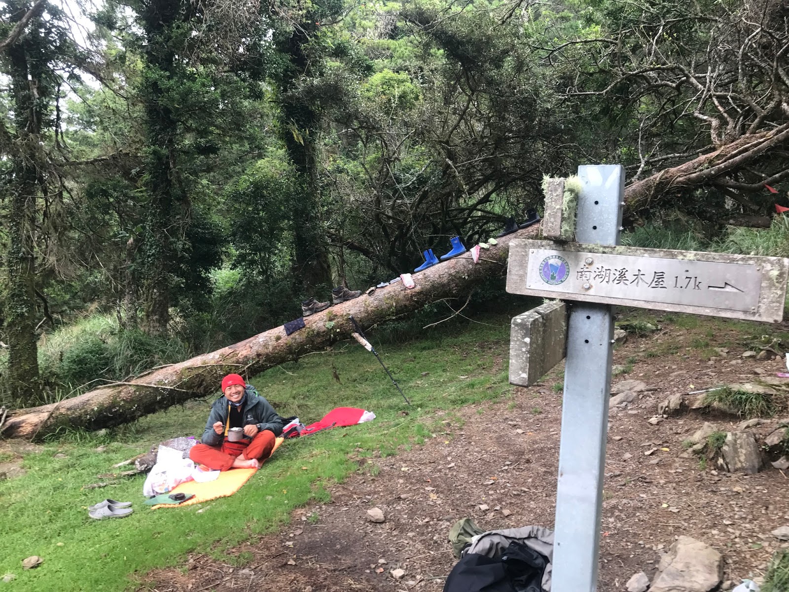 從中央尖溪山屋就知道回鞍部後,小特助要走回雲稜山屋去取回放在山屋的瓦斯罐及垃圾袋。畢竟原本是以為天候會變差甚至可能會從南湖山屋撤退回雲稜再住,但沒想到天氣一直都不錯!所以不能把垃圾遺留下來,很巴結的去拿。預計來回約一小時。