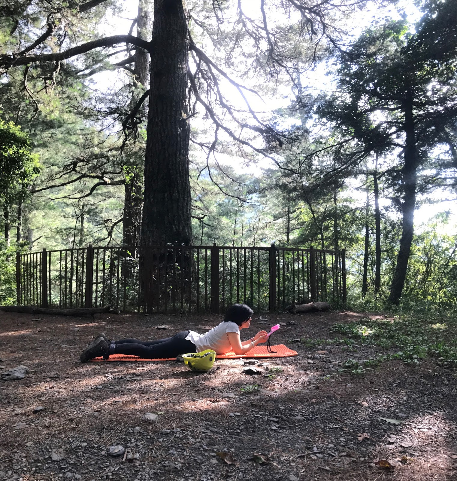 回到登山口,想說依照他們腳程應該很快就會遇到,又想偷懶糜爛一下!又拿出睡墊來躺,真舒服阿!!微風徐徐的吹著,透過樹葉樹枝看著藍天,眼皮都快閉上了...