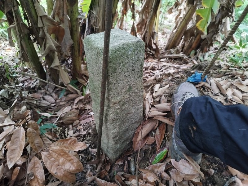 (南投市)牛牯嶺(此處座標23.882347,120.661100。基石在駁坎上的茶園中,由紅色噴漆處直直進入)