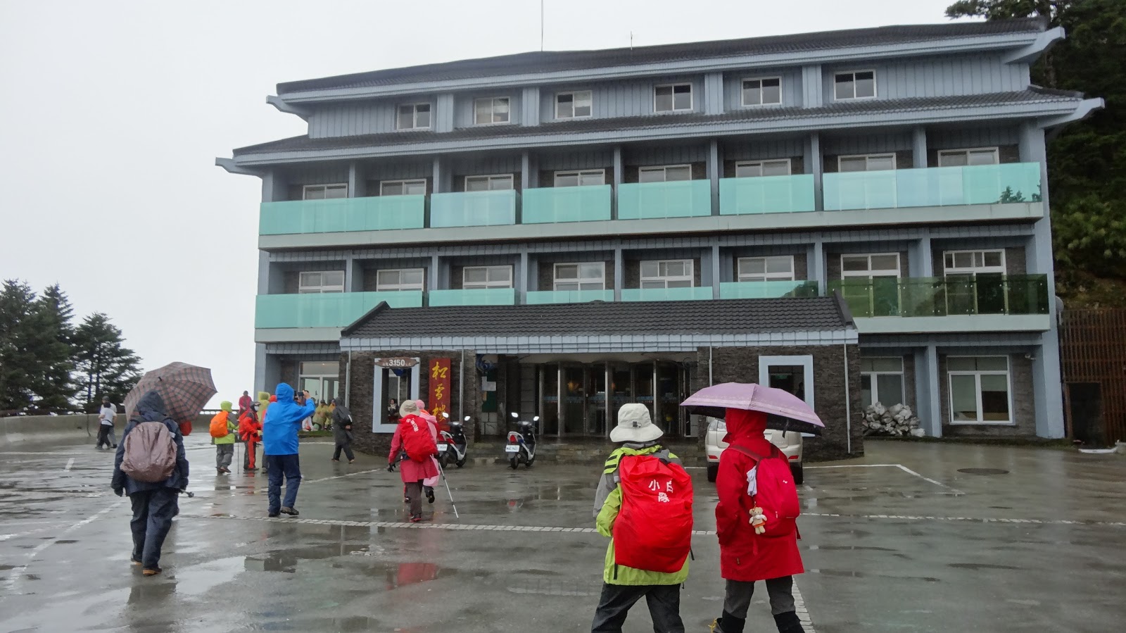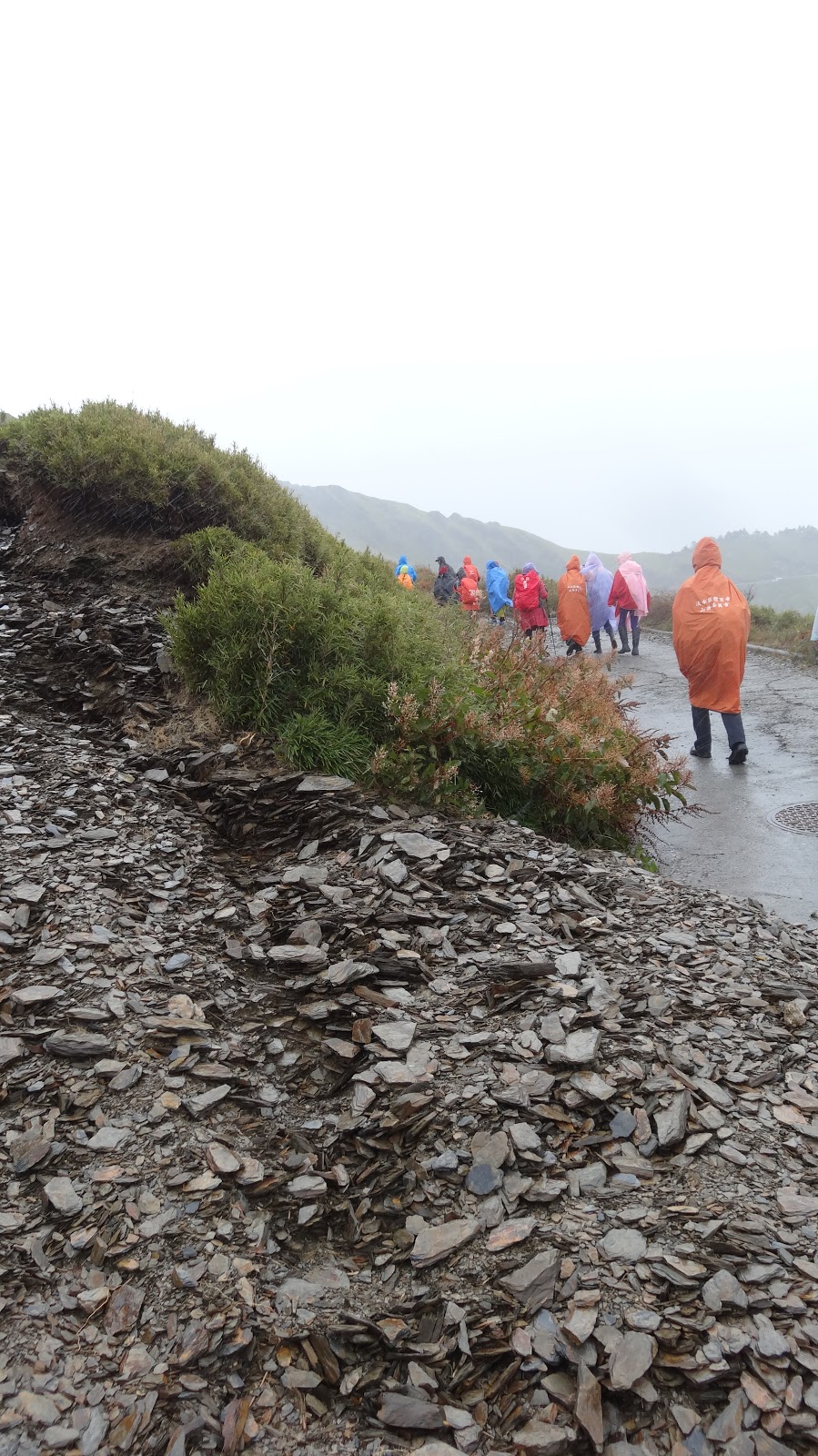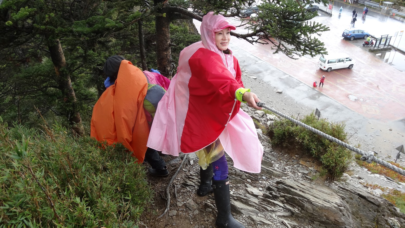 濕冷的天氣, 穿著雨衣, 雨褲及防水帽全副武裝把全身包得緊緊的, 首先挑戰的是合歡山主峰, 繞著山往上走, 雨不停的打在身上, 淋著雨刮著風每一步都覺得猶豫後悔, 或許昨天的表決該投反對票?
