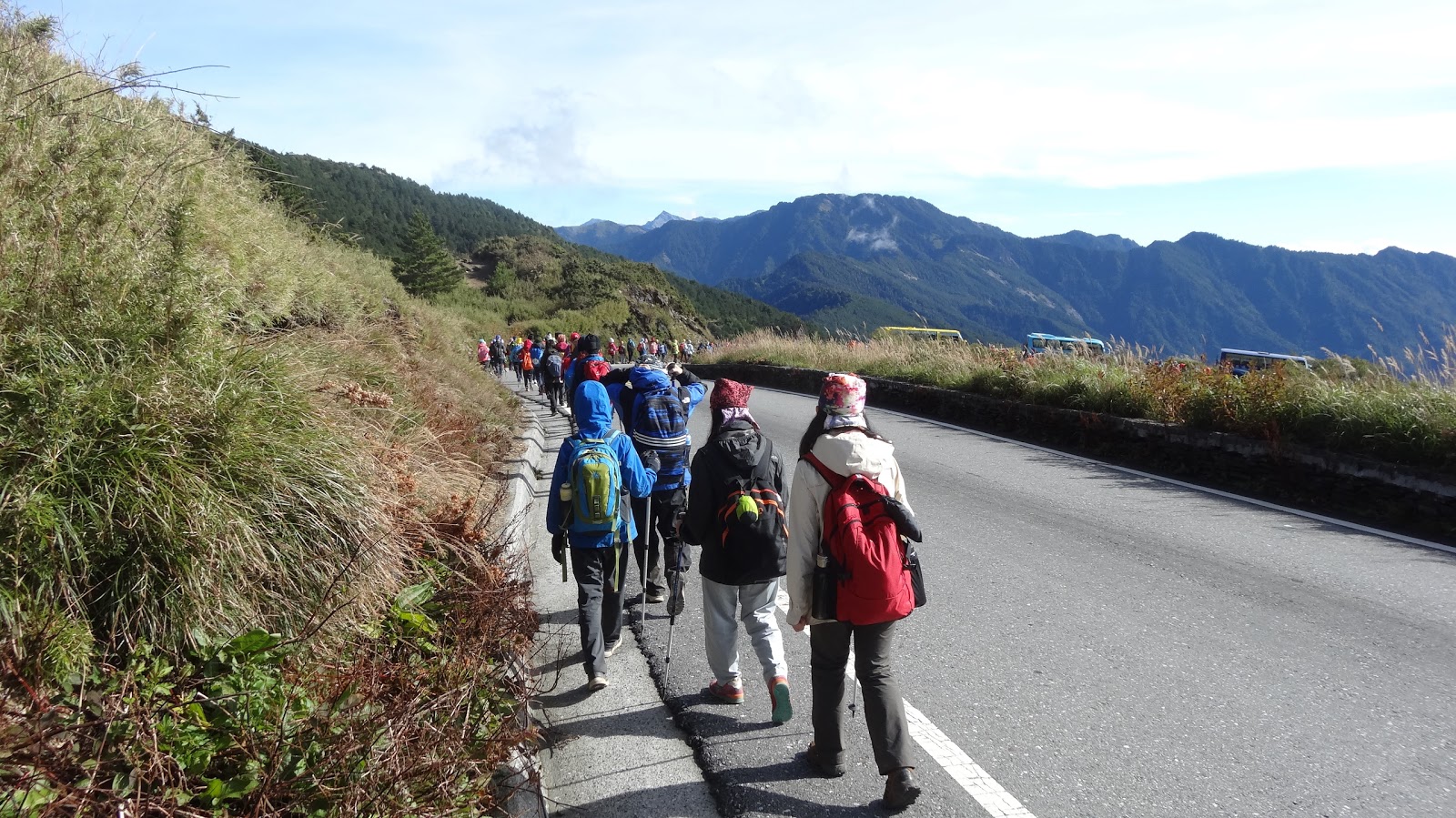 原來前頭是某學校的戶外教學, 行進中小朋友有秩序的慢慢往上走, 也不會喧嘩吵鬧, 看到人經過都會很有禮貌的讓位