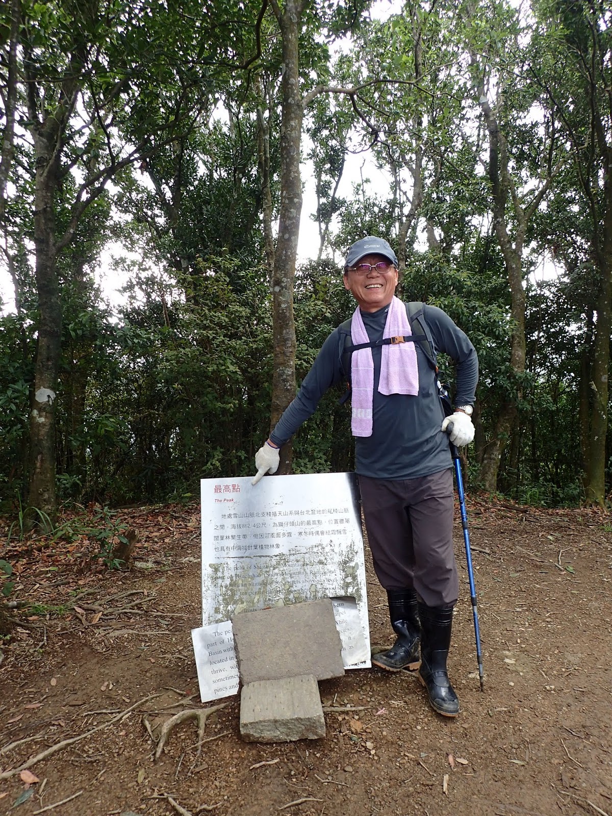 2:13 來到獅仔頭山, 小百岳#20, 海拔858公尺, 一等三角點, 新店第一高山, 由獅尾登山口過來的九段及麗華已先到在等我們, 甚麼, 不是從新店下山, 要繞o行回去, 這下要趕路了