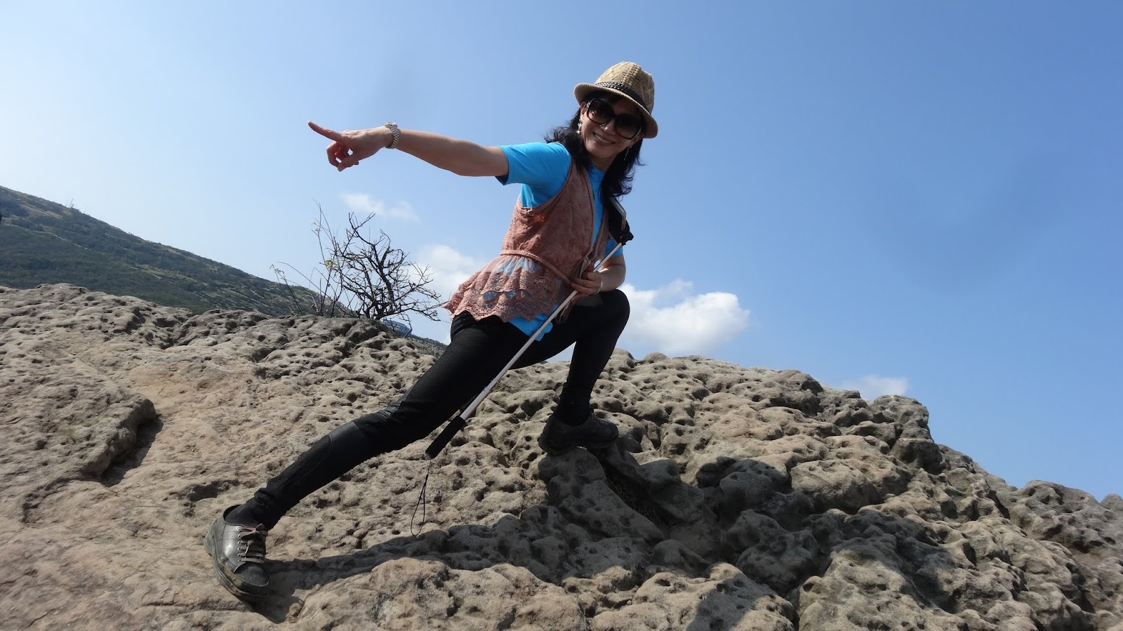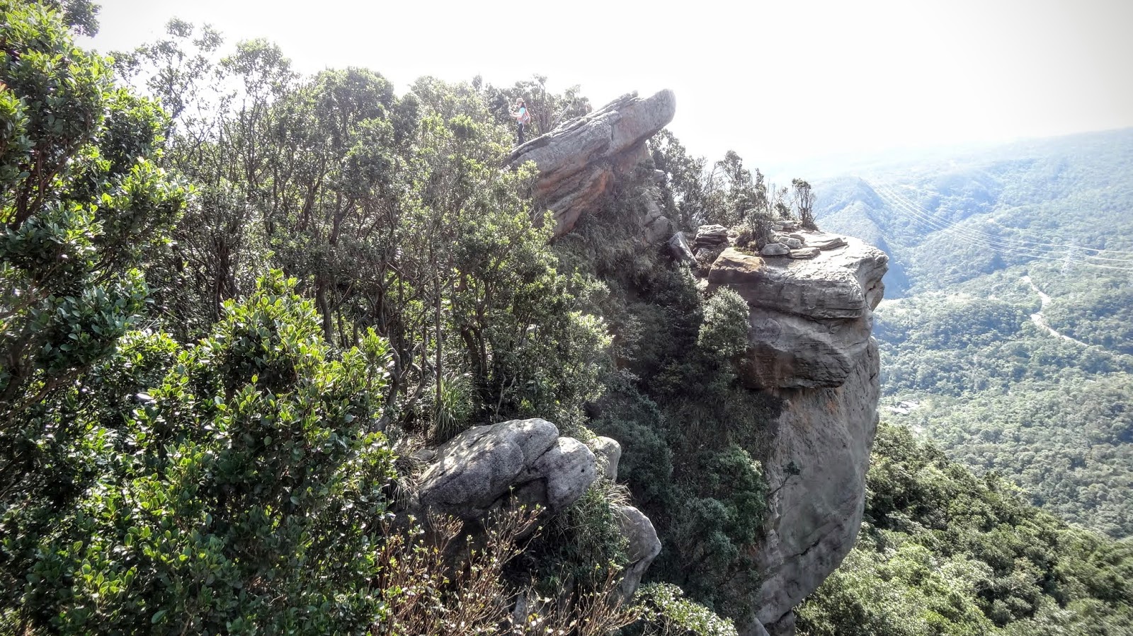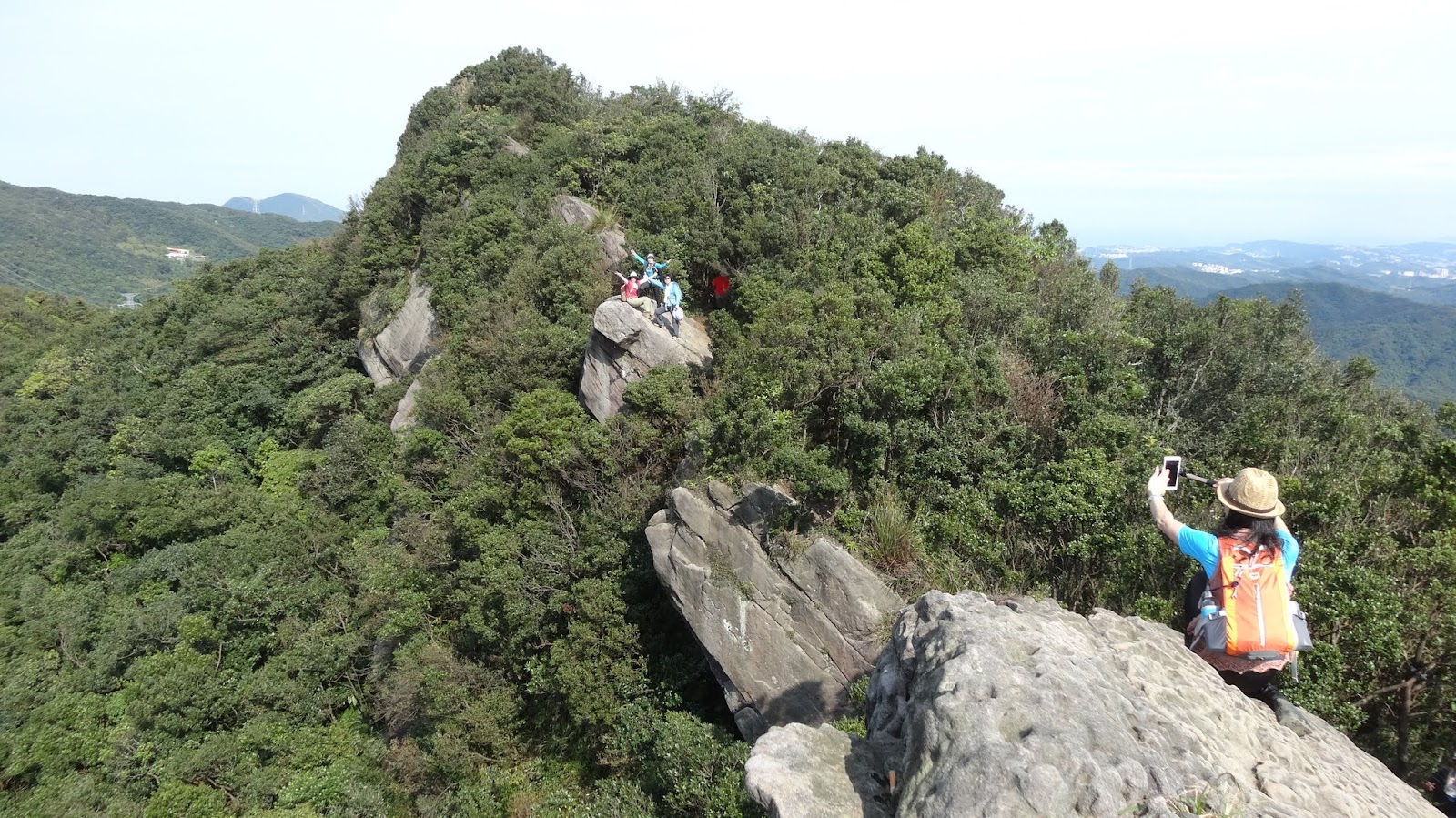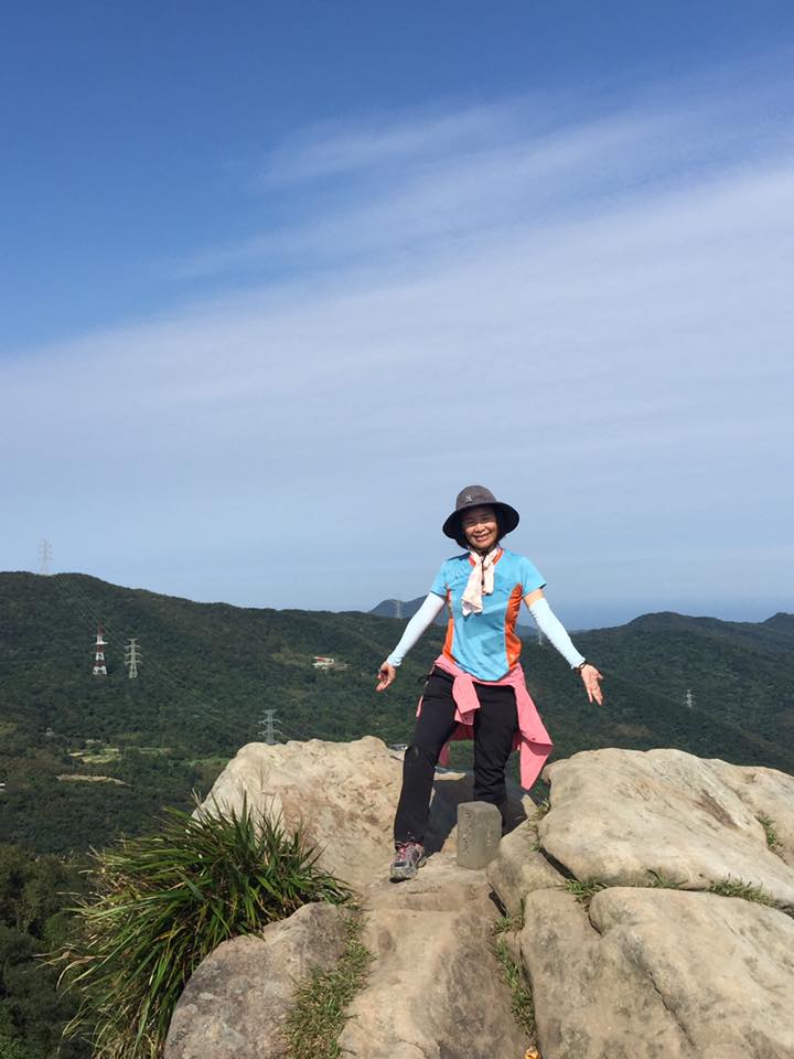 登上新山最高點, 踩在斜斜的岩塊上, 遼闊的視野盡收眼簾
