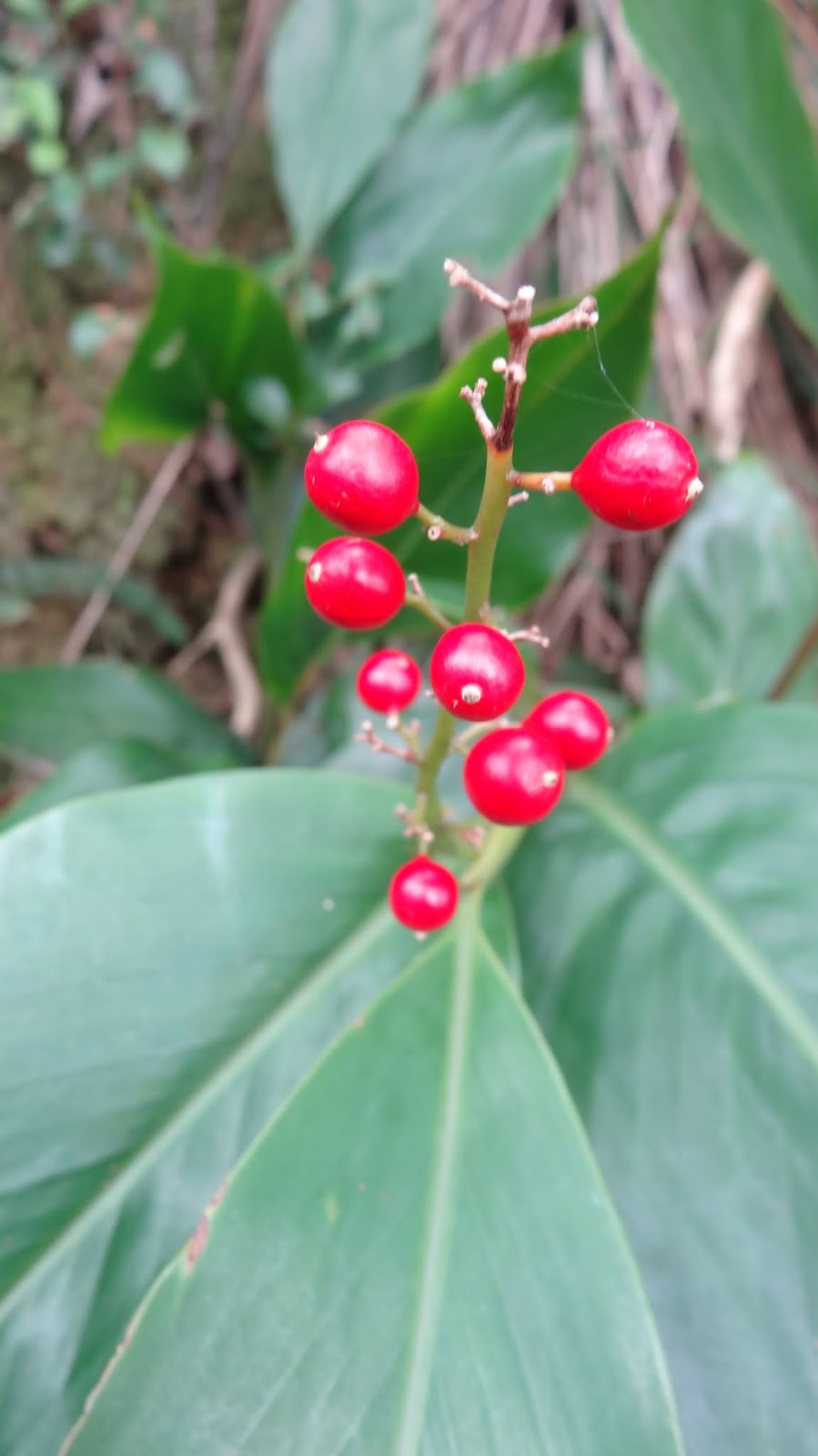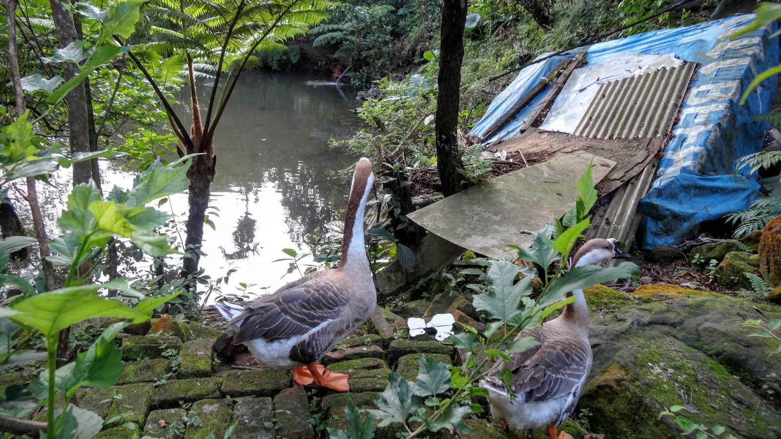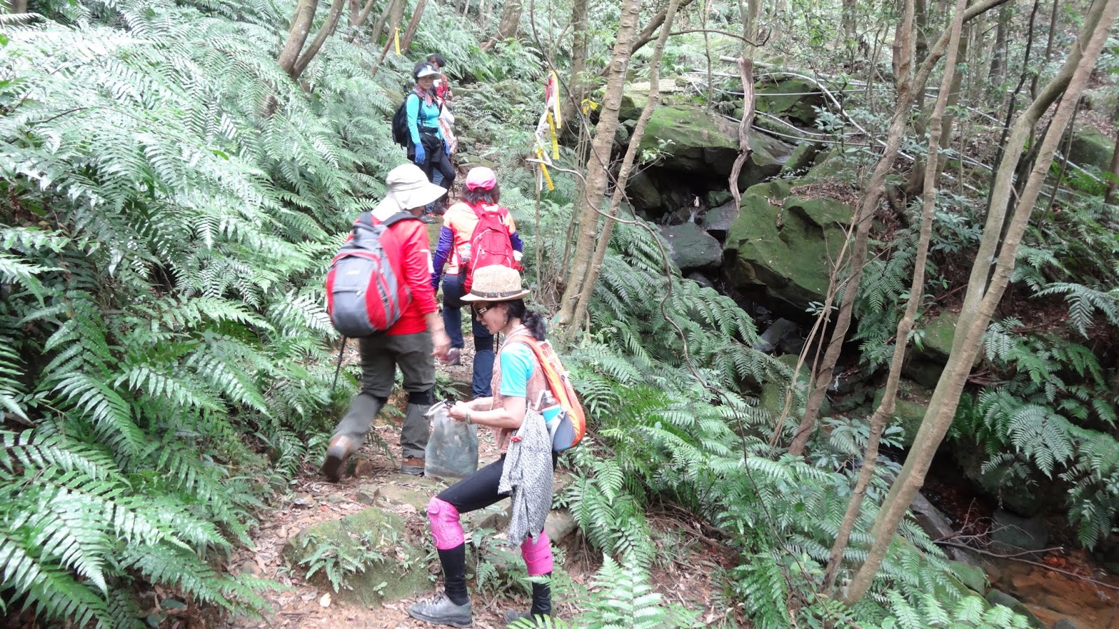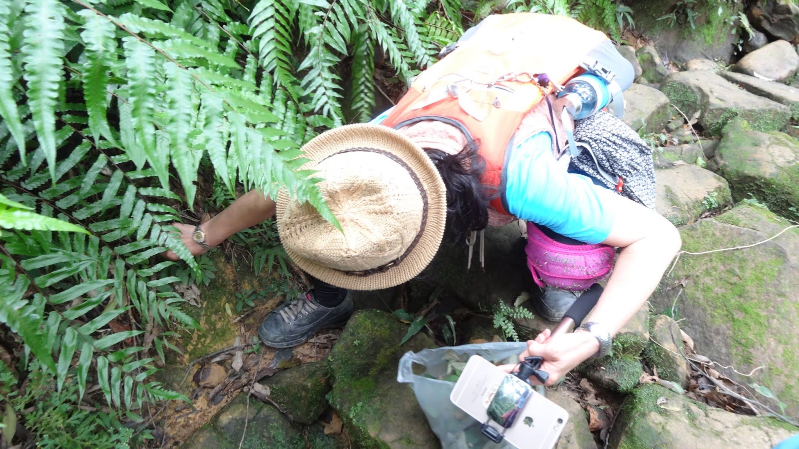 順著溪畔走, 琴妹已收穫滿滿, 採了不少抱壁蟑螂 (哈哼花), 說可以清血降壓的...