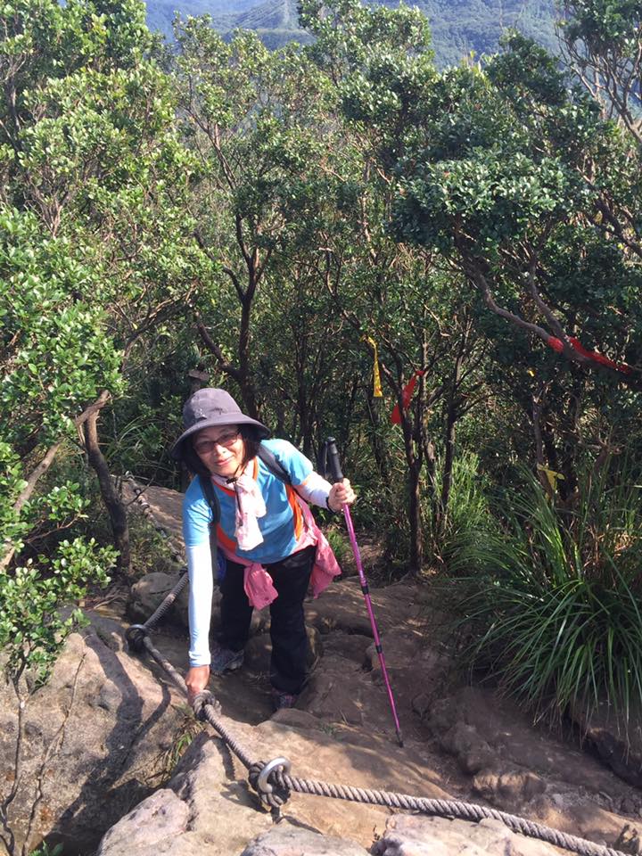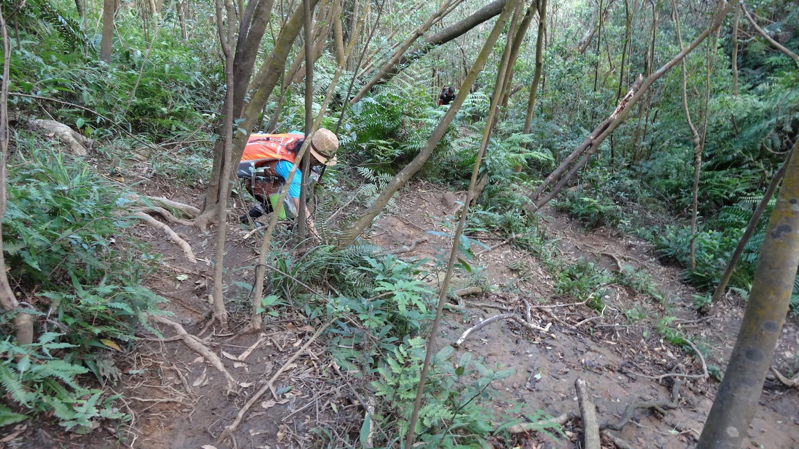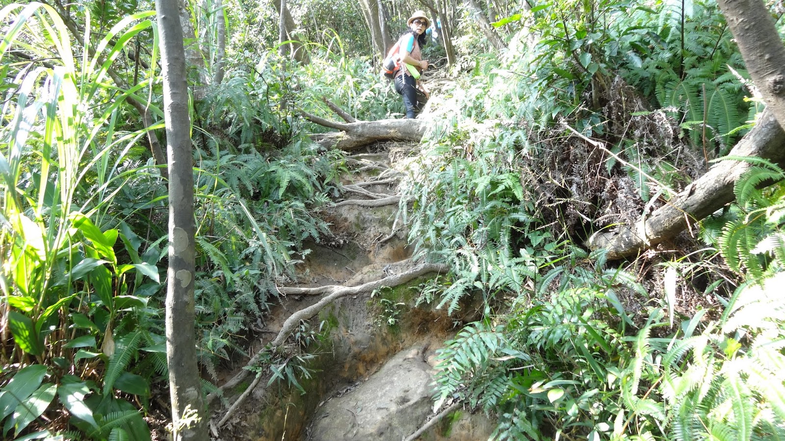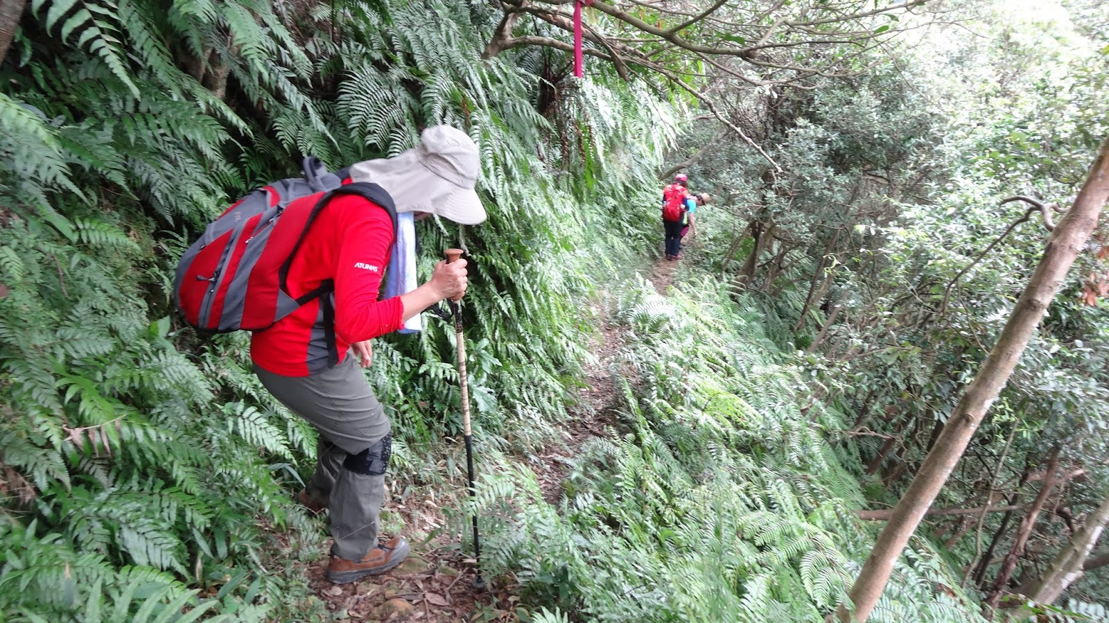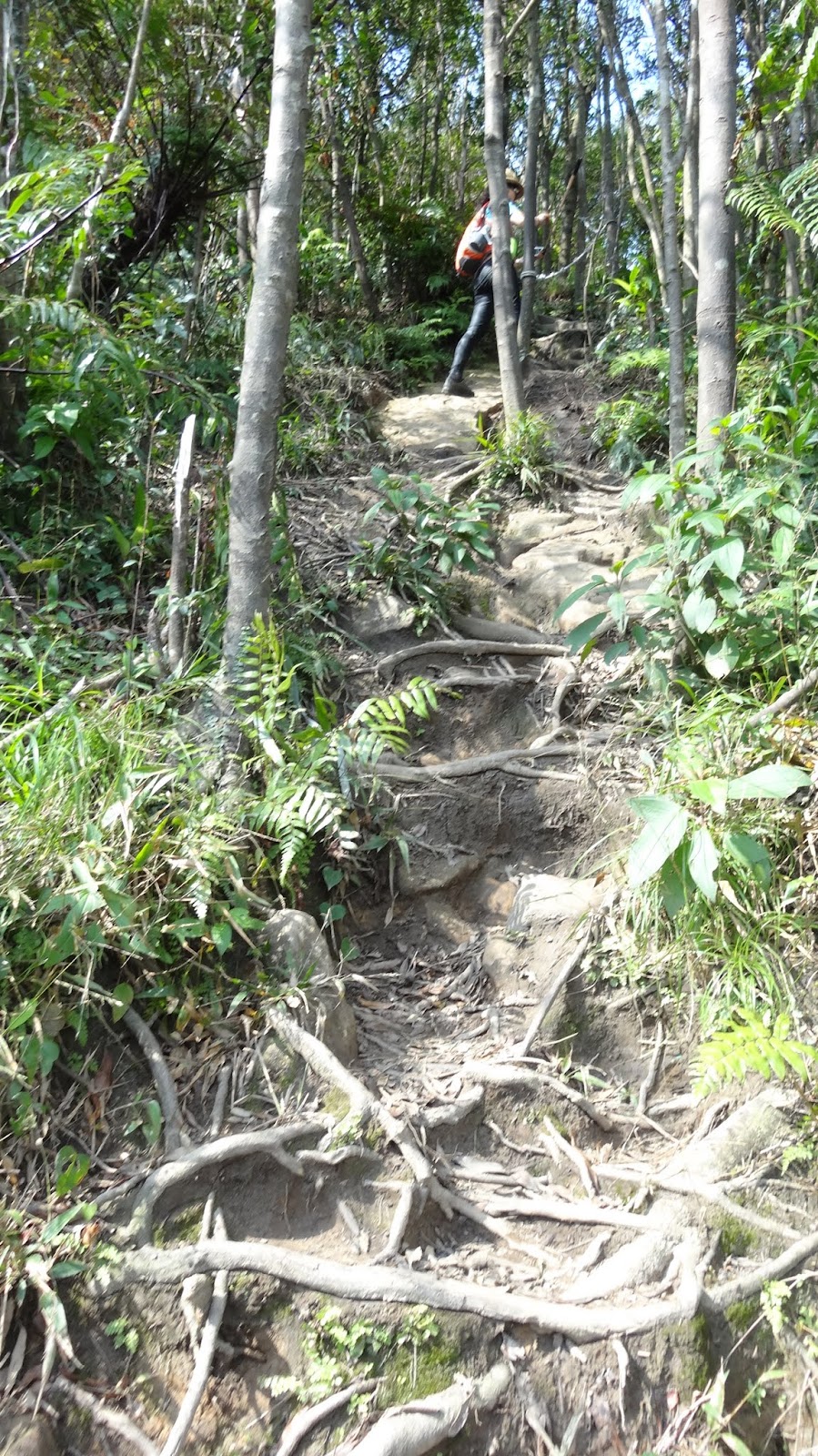 一路6~70度陡坡直上新山 , 踩點清楚好走, 但下雨恐怕會危險