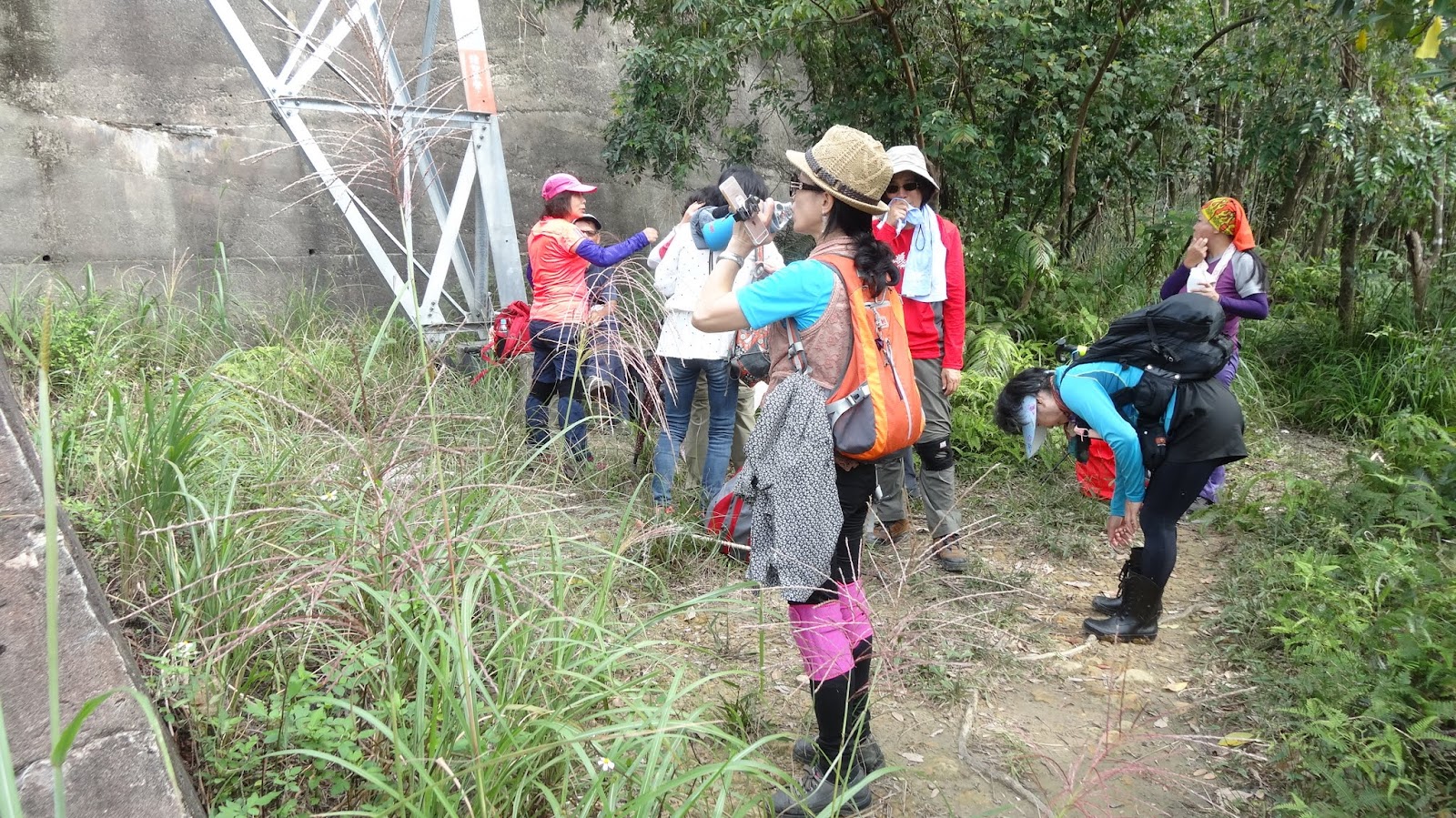 經過高壓電塔旁稍做休息, 這時腿上已沾上不少恰查某, 琴妹的衣服也報銷了, $$及琴妹幫大家補上蚊蟲液