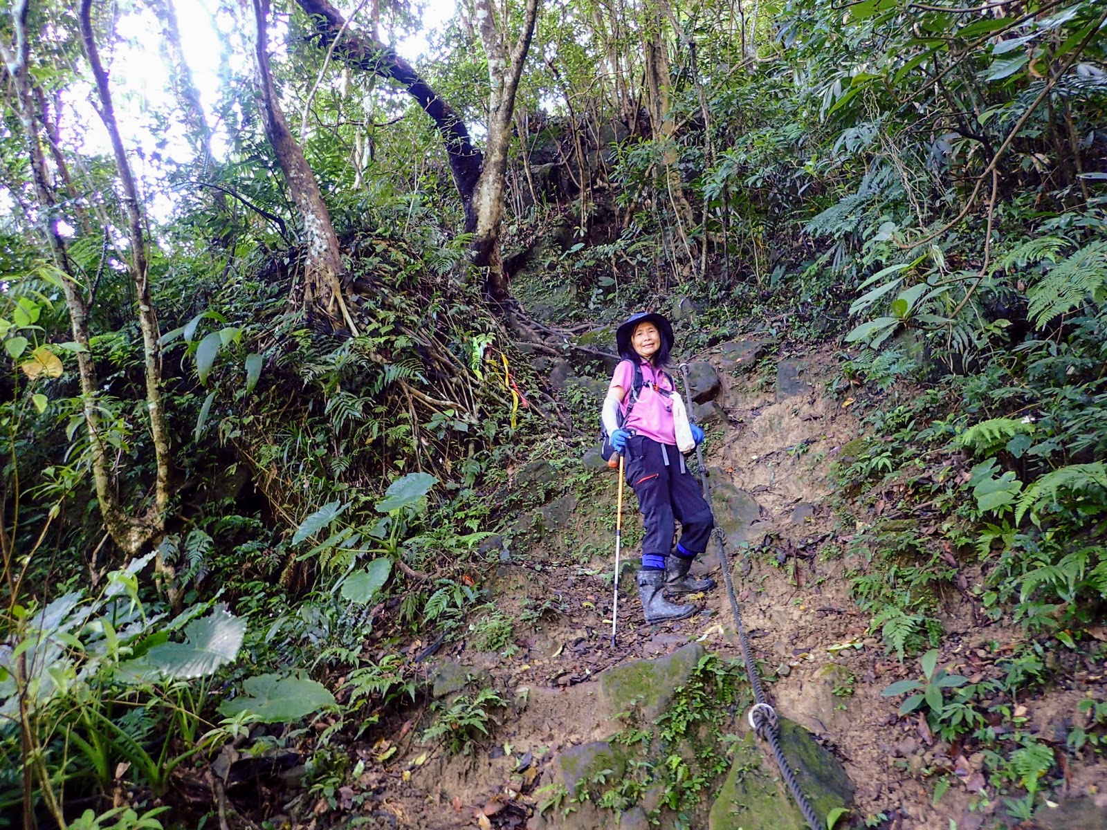 拉繩攀岩, 前面兩位快步如飛, 把我遠遠拋在後, 我是體力明顯不濟, 走一步就喘兩步, 最近幾次爬山都覺得很累, 強烈懷疑是不是之前被恙蟲咬過的後遺症