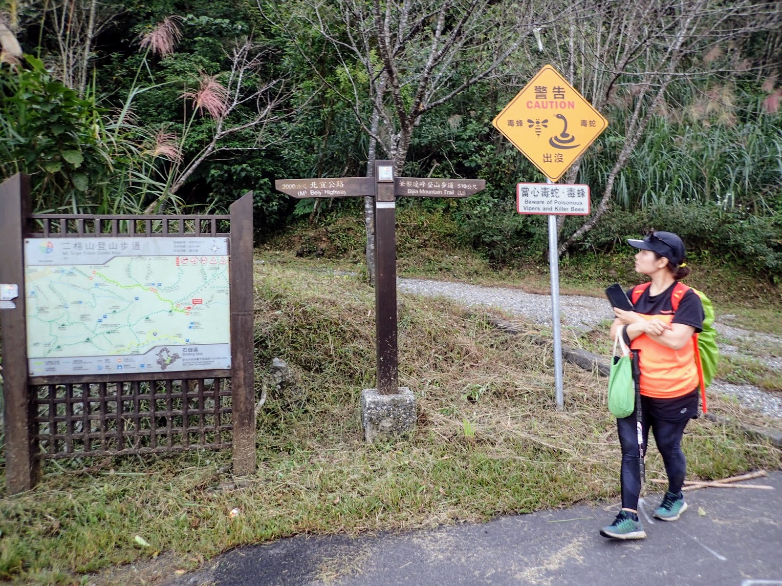 8:00景美捷運站2號出口搭666公車, 9:00來到石碇, 站牌上沒看到人, 以為已經遲到被放鴿子了, 東張西望看到遠遠有人對我招手, 猶豫了一下, 似乎不是印象中的CT, 走近過去, 是啦, 但明顯瘦了很多認不得了, Kelly則是初次見面... 9:10往筆架登山口出發, 為了成全Kelly跟CT的約會, 盡量走在後不打擾他們啦