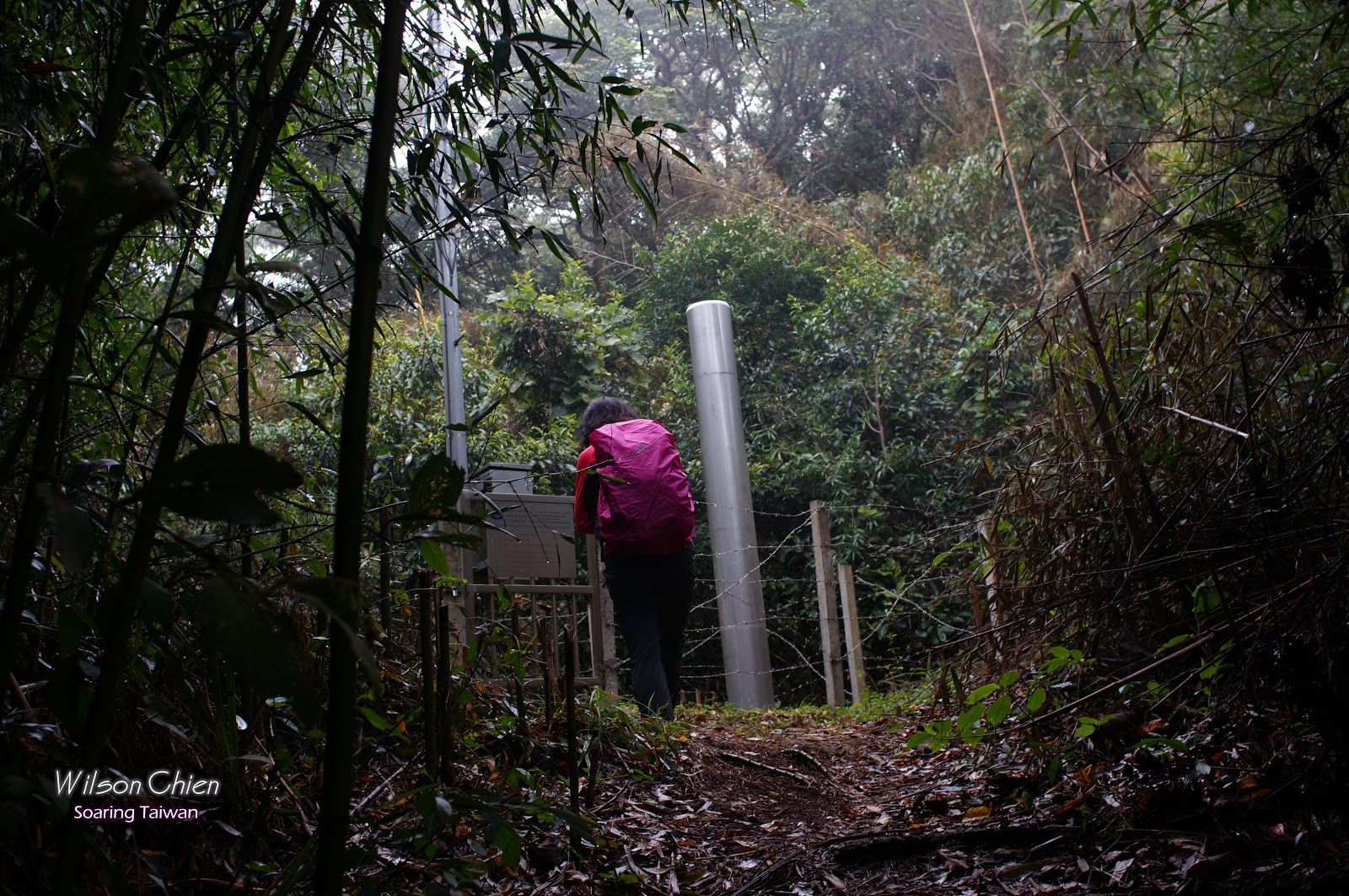 階梯潮濕上爬不到十分鐘就到了稜線處, 這兒有一中央氣象局設立的雨量統計站