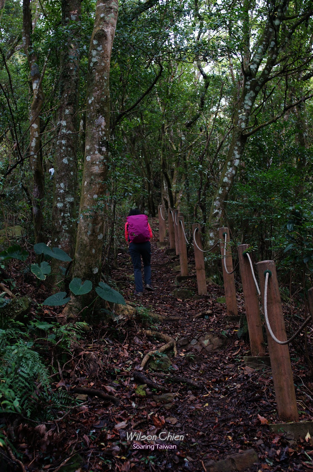 上爬沒多久便是稜線, 且又是古道所以路徑明顯寬又平坦,