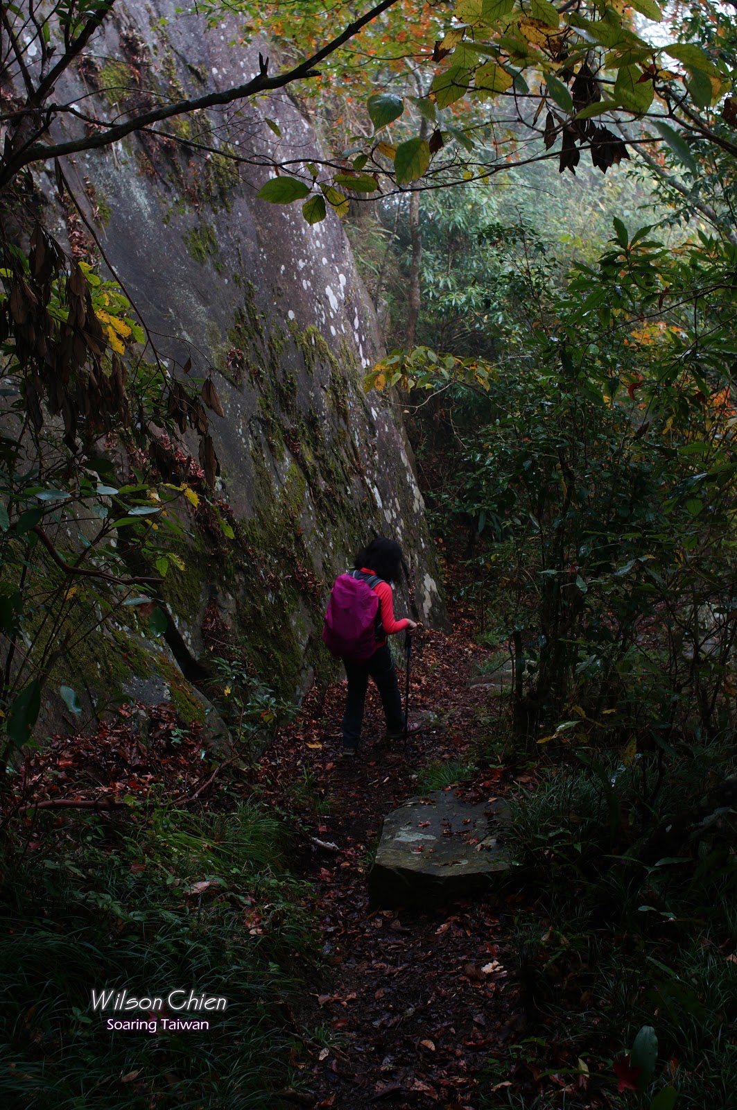 幾乎都是走在落葉的山徑之上很舒適, 還可以看到日據時的警備所遺址等, 沿路的楓紅處處,