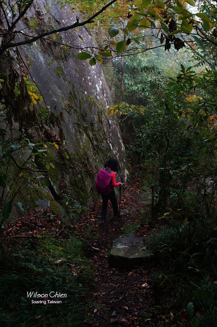石壁處上爬沒多遠, 這裡的楓紅落葉更令人醉