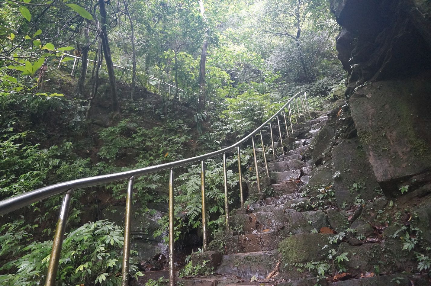 心得:銀河洞登山口到銀河洞瀑布處是連續的爬坡.但是因為走在河道邊.除了清爽還充滿芬多精.沿路也都長滿蕨類.慢慢走的話一下就到瀑布口.中途還有一處可以親近水邊的河床.來摸一摸清涼的水.暑氣全消.站在旁邊感覺都充飽電了.到銀河洞瀑布處.就特別適合拍照.隨便拍也拍了一大堆.除了壯觀的瀑布自高處傾瀉而下.卻也不太會被水噴到.設計的平台真是拍照的好地方.步道上方有座寺廟可以上去看一下.平台的右邊就可以續走步道.不過上去後有一段較為濕滑.甚至水就是在步道上流瀉.小心慢慢走通過.