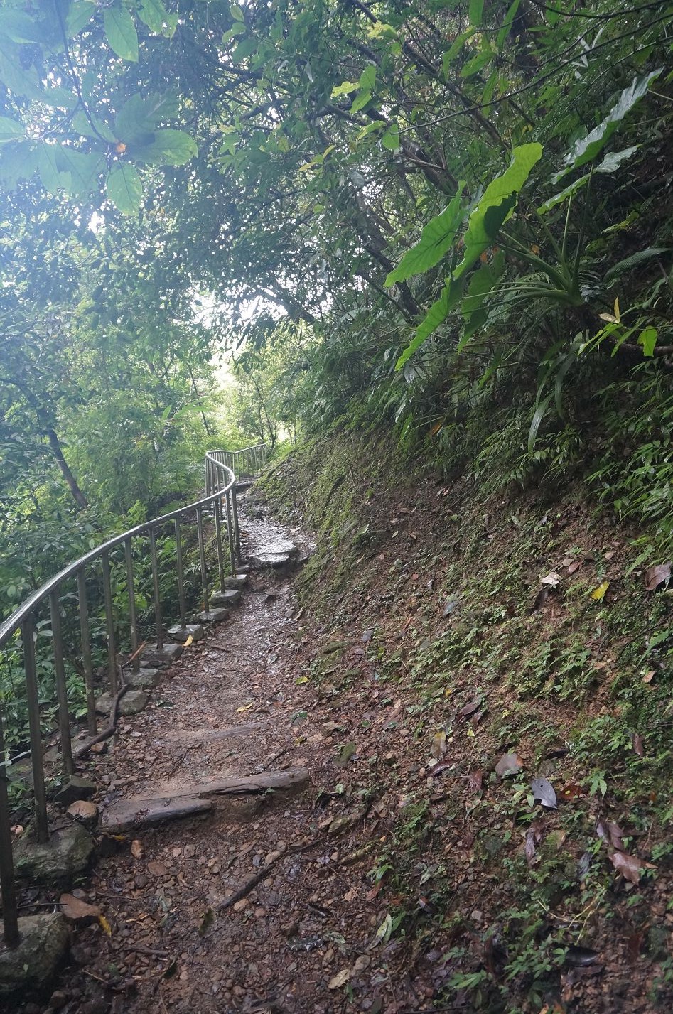 此處右行登上步道 步道濕滑