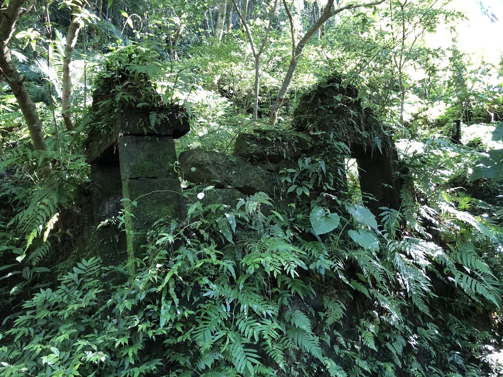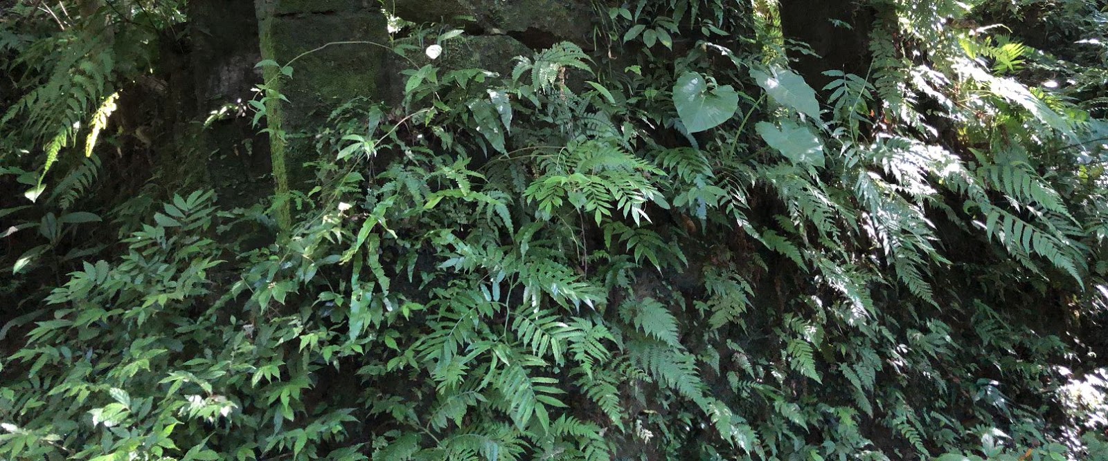 尖銳的石頭光禿的表面.搭上旁邊的蕨類頗有假山水的佈景的味道