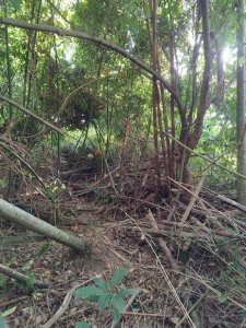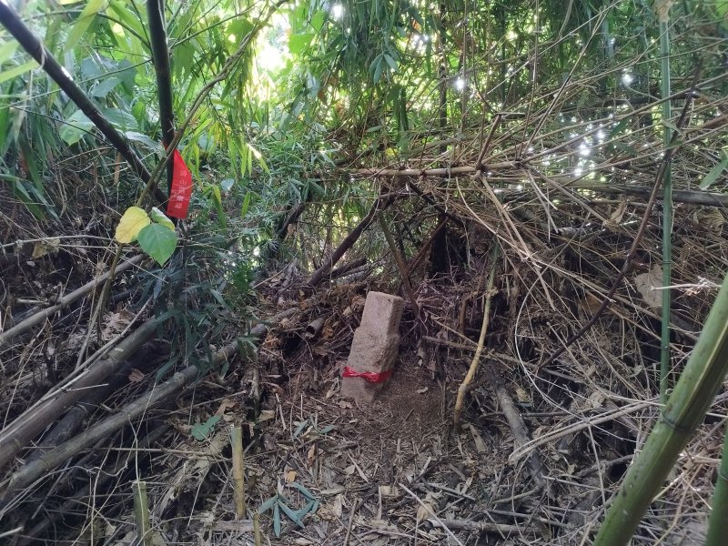(梅山)樟詩苓~4(這本來是一顆容易摸到的基石,但後來因為被層層倒竹給覆蓋,使得後來只能從邊坡用鑽的來看基石,現在我花了快一個半小時把倒竹都清開,以後可以輕鬆摸點了)