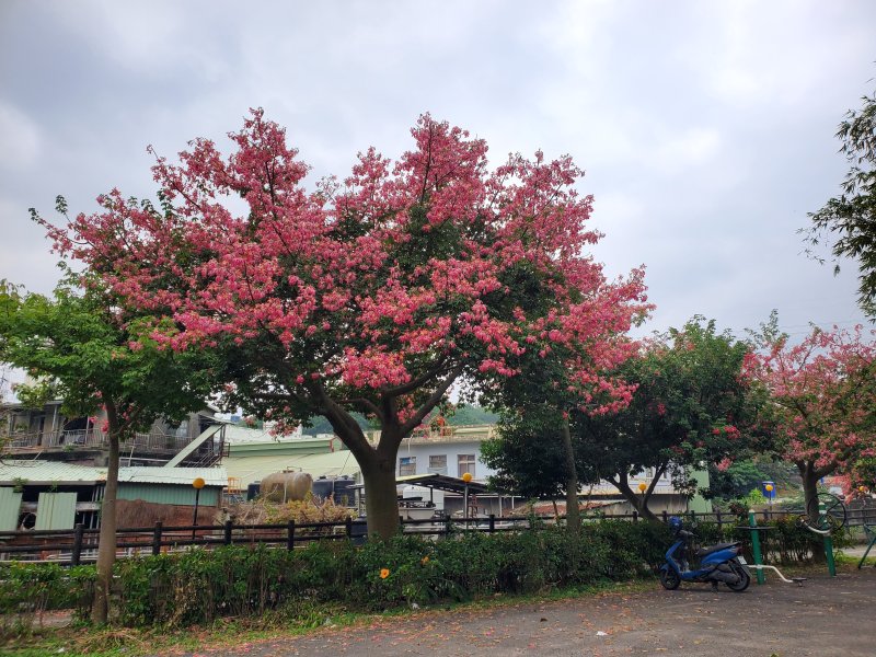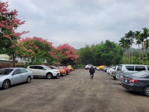 停車場的美人樹正盛開