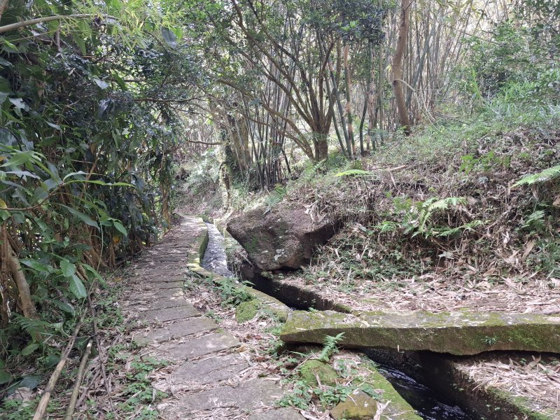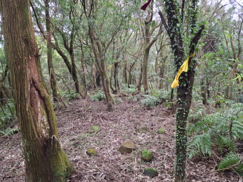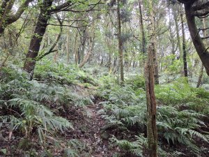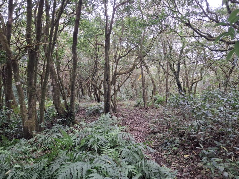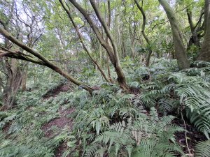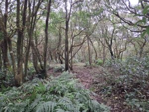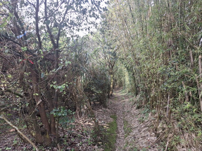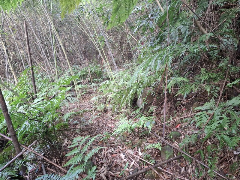 通過竹林後,林木漸密並滿佈蕨類,但尚有陽光透進來 (途經多處駁坎遺跡)