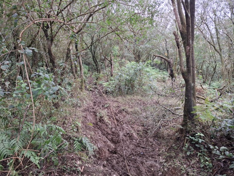 告別芒草區再度進入森林,循防迷線登竹篙山,後續山徑非常泥濘